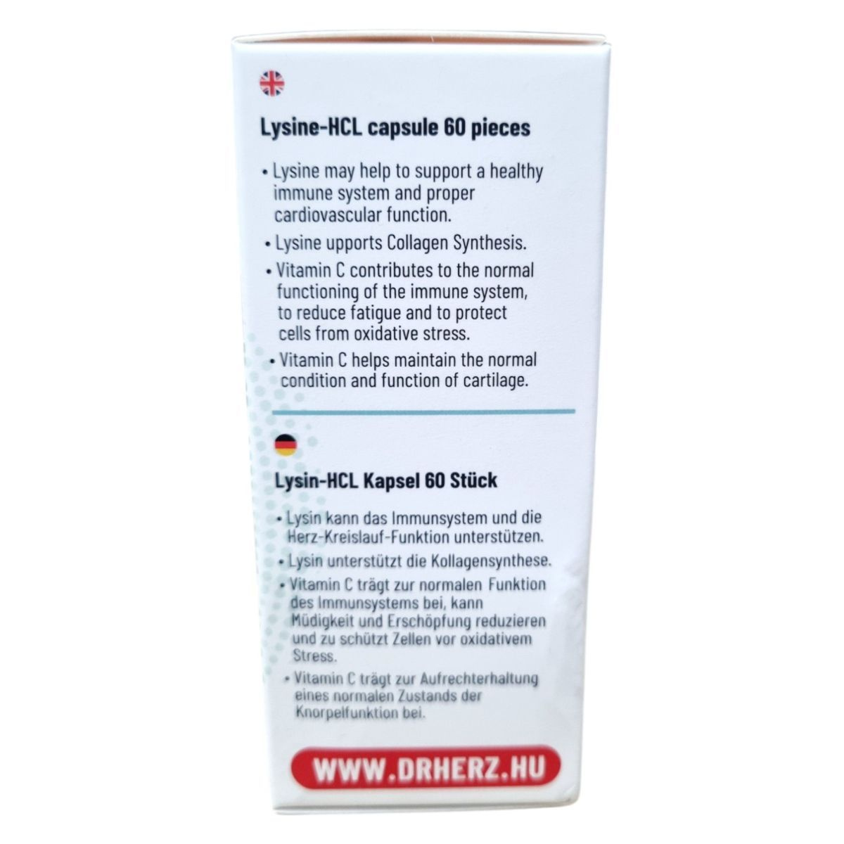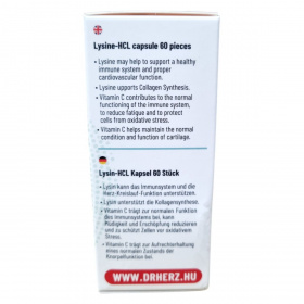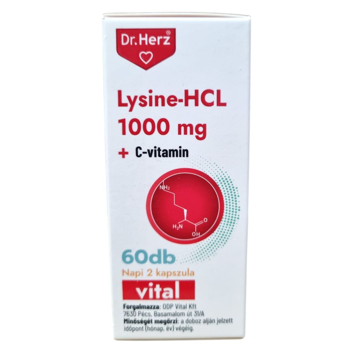 A Dr. Herz Lysine-HCL 1000 mg + C-vitamin kapszula egy étrend-kiegészítő, amely L-lizint és C-vitamint tartalmaz. A lizin egy fehérjeépítő aminosav, amely az emberi szervezet számára alapvető fontosságú. A C-vitamin hozzájárulhat az immunrendszer normál működéséhez, a fáradtság és kifáradás csökkentéséhez, valamint a sejtek oxidatív stresszel szembeni védelméhez. A termék napi adagja 2 kapszula, amelyet főétkezések előtt, bőséges folyadékkal kell bevenni. A termék forgalmazója az ODP Vital Kft, és az OGYÉI által notifikált étrend-kiegészítőként van nyilvántartva.
