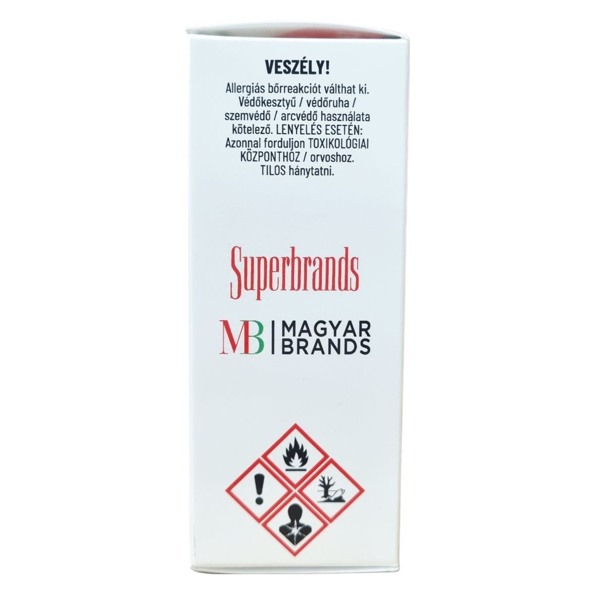Védőkesztyű, védőruha, szemvédő és arcvédő használata kötelező. Lenyelés esetén azonnal forduljon toxikológiai központhoz vagy orvoshoz, tilos hánytatni. Tűzveszélyes, irritáló, ártalmas, környezetre veszélyes és krónikus egészségkárosító hatású.
