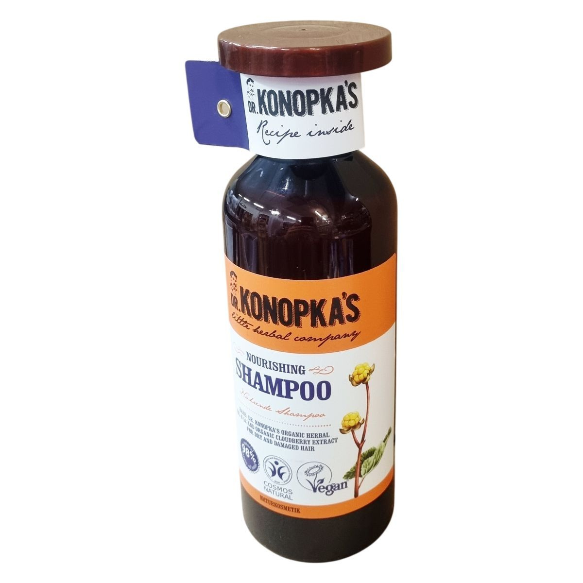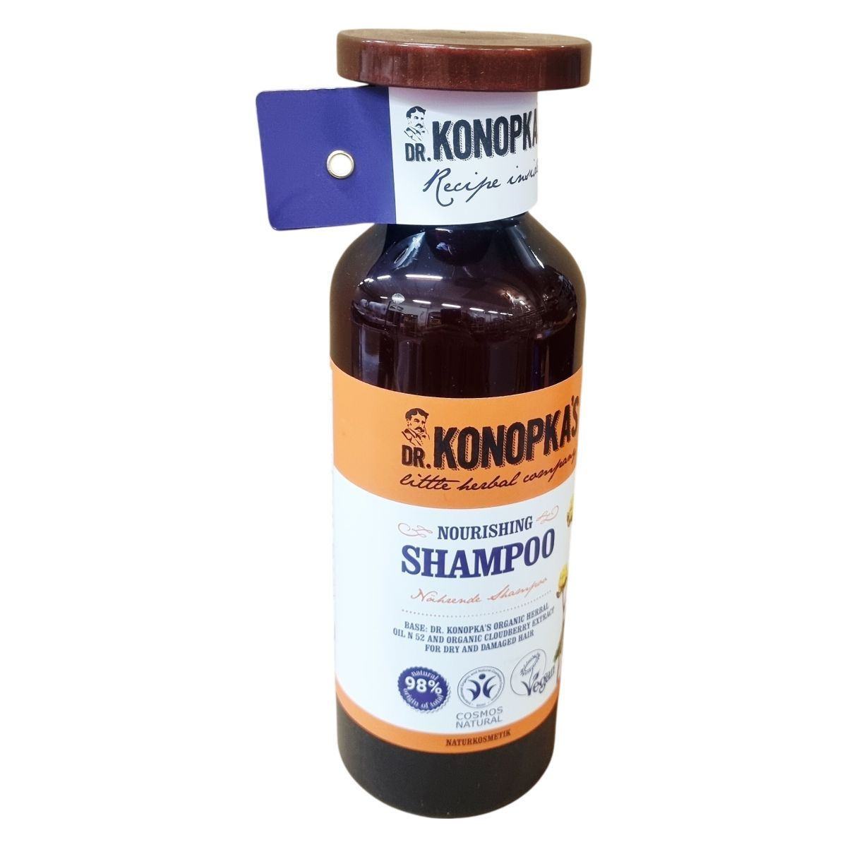 A sampon Dr. Konopka gyógynövényboltjából származik, ahol generációkon át öröklődő, gyógyító gyógynövényekre alapozott receptek alapján készülnek vitalizáló balzsamok, borogatások és kenőcsök. Termékünk gazdag a speciális N52 gyógynövény hajolajban, amely BDIH és COSMOS organikus tanúsítvánnyal rendelkezik, valamint törpemálna-kivonatot tartalmaz, amelyek együtt támogatják a száraz és sérült haj helyreállítását, táplálását és erősítését. A használat során kis mennyiségű sampont kell alkalmazni nedves hajra, habosítani, majd alaposan leöblíteni, igény szerint ismételve a folyamatot. Az összetevők között megtalálhatók többek között különféle organikus olajok és kivonatok, amelyek ápoló hatásúak. A termék természetes, vegán és natúrkozmetikum, amely Európában készül.
