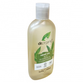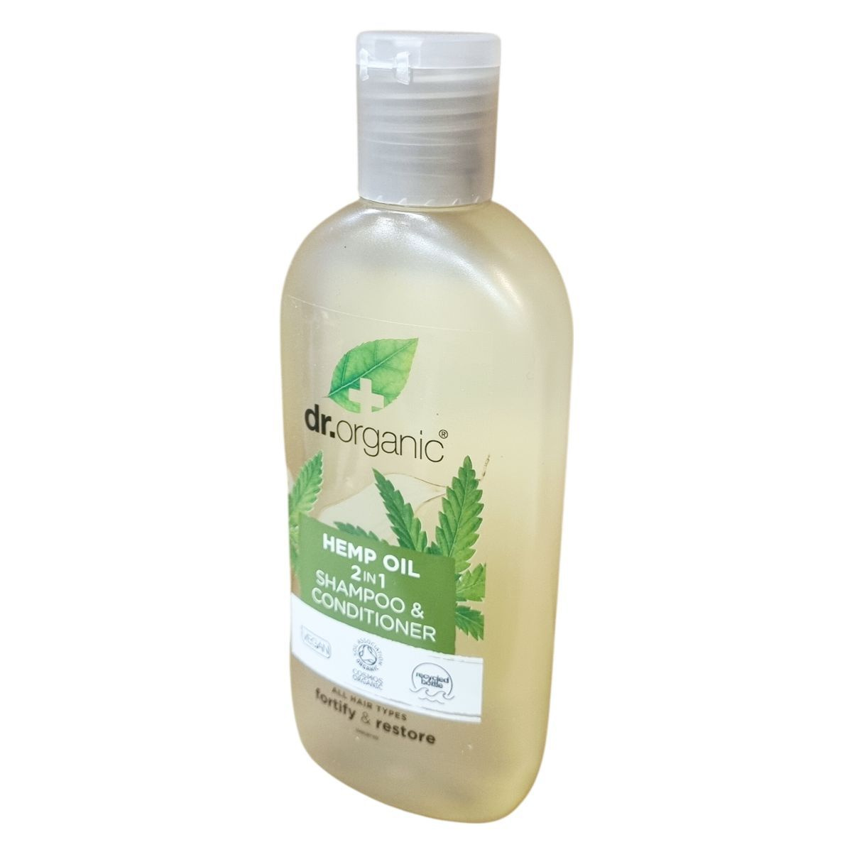 A dr.organic Hemp Oil 2in1 Sampon és Kondicionáló egy 265 ml-es vegán biokozmetikum Cosmos Organic minősítéssel, mely bio kendermagolajjal készült és minden hajtípus számára ajánlott. A kiegyensúlyozó formula erősíti és helyreállítja a hajat, ezáltal az természetesen egészségesebbé, erősebbé és ragyogóbbá válik. A termék újrahasznosított, "ocean bound" flakonban került forgalomba, hozzájárulva a fenntarthatósághoz. A termék felbontás után a csomagoláson jelzett hőszimbólum alapján használható. Gyártási helye az Egyesült Királyság.