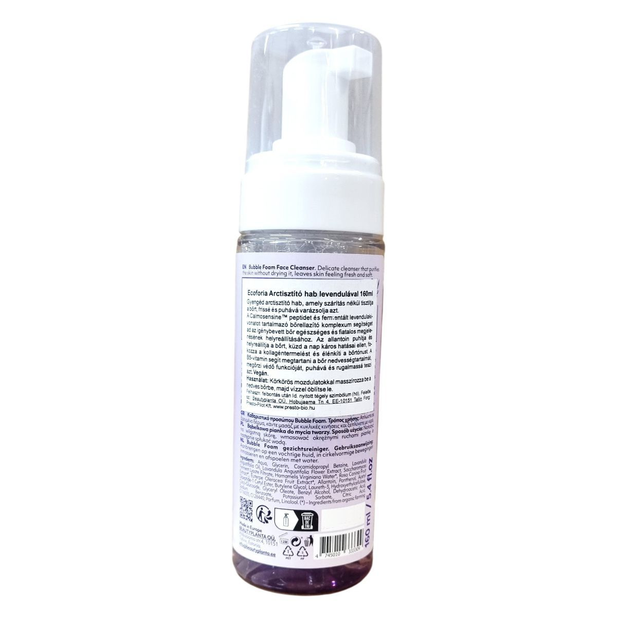 Ez a gyengéd arctisztító hab a Calmosensine™ peptidet és fermentált levendulakivonatot tartalmazó bőrelazító komplexum segítségével támogatja az igénybevett bőr egészséges és fiatalos megjelenésének helyreállítását. Az allantoin puhítja és regenerálja a bőrt, védi a nap káros hatásai ellen, fokozza a kollagéntermelést és élénkíti a bőr tónusát. A B5-vitamin segít megőrizni a bőr nedvességtartalmát, fenntartja annak védő funkcióját, így a bőr puhává és rugalmassá válik. A termék vegán, és szárítás nélkül tisztítja a bőrt, frissé és puhává varázsolva azt.