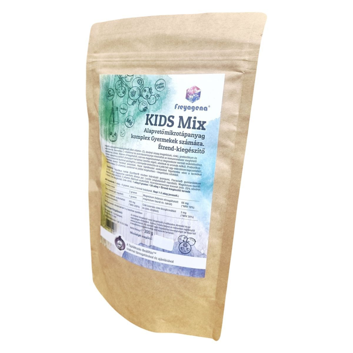 A NutriBalance KIDS Mix egy vitaminokkal, ásványi anyagokkal, prebiotikumokkal és lecitinnel kombinált étrend-kiegészítő gyermekek számára, amely savmentes C-vitamint és acerola-cseresznye-kivonatot tartalmazhat az immunrendszer megfelelő működésének támogatására. Ízetlen, teljesen elegyáztatott, szerves magnéziumot biztosít, ami az idegrendszer normál működéséhez járulhat hozzá. A termék fagyasztva szárított áfonyaport tartalmaz ízesítés céljából, adalékok és aromák nélkül. Prebiotikus rostokkal, lecitinnel és taurinnal gazdagították a jobb emésztés és a bél-agy-mikrobiom kapcsolat érdekében. Fogyasztását növényi italokkal javasolt kombinálni, és a hazai táplálkozási szokások alapján D3-vitaminnal, szelénnel és jóddal érdemes kiegészíteni megelőzési célból. A termék 50 adagnyi kiszerelésű, melynek nettó tömege 300 g, és a Táplálkozás-Beállítás™ szakmai támogatásával és ajánlásával készült.