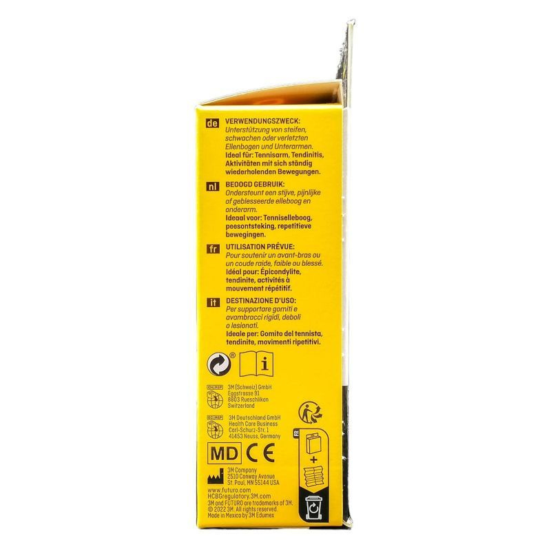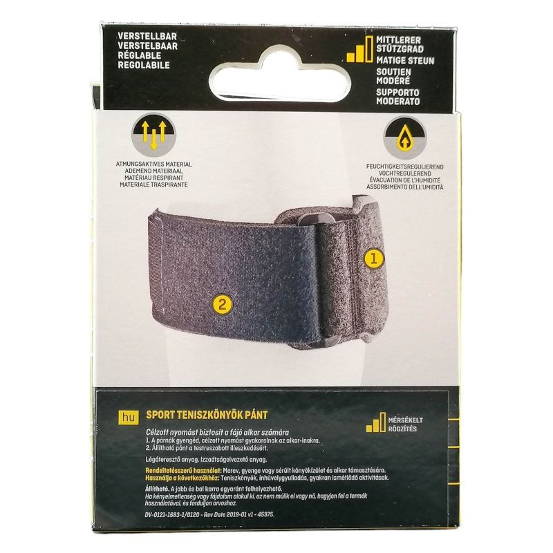 Orvostudományi és mérnökszakértői csapatunk támogatásával. Rendeltetésszerű használat: Merev, gyenge vagy sérült könyökízület és alkar támasztására. A jobb és bal karra egyaránt felhelyezhető. Használja a következőkhöz: Teniszkönyök, ínhüvelygyulladás, gyakran ismétlődő aktivitások. A párnák gyengéd, célzott nyomást gyakorolnak az alkar-inakra. Állítható pánt a testreszabott illeszkedésért. Légáteresztő anyag. Izzadtságelvezető anyag. Állítható. Gyengéd, célzott nyomást gyakorol a könyök inakra és izmokra. A FUTURO™ Sport Teniszkönyök Pánt segít, hogy győzhessen. Nincs ami visszatartsa, nem kell, hogy profi tenisz játékos legyen ahhoz, hogy élvezhessen egy kis adogatást vagy könnyed mozgást. A pánt segít célzott nyomást gyakorolni a sérült könyökre. Precíziós ínpárnával, ami gyengéd, mégis biztost tartást nyújt.
