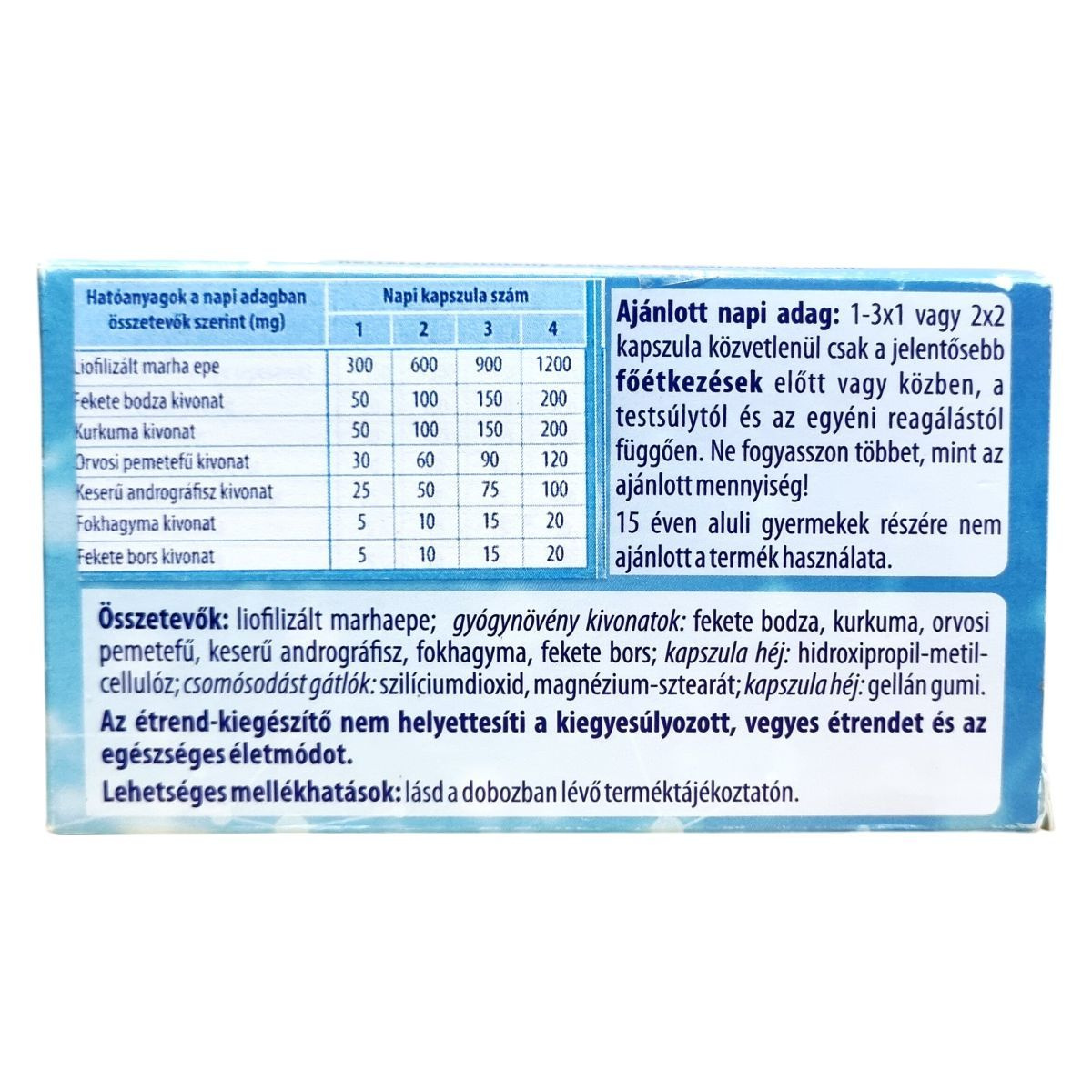 A készítmény nem szedhető heveny eperohamok és epevezeték-elzáródás okozta sárgaság esetén, valamint terhesség és szoptatás alatt. Egyéni érzékenységtől függően az első néhány napban enyhe hasmenés, émelygés előfordulhat, különös tekintettel ha nem kapcsolódik étkezés a kapszula bevételéhez. Epére ható egyéb készítményekkel együtt használata nem ajánlott. Ajánlott a készítmény használata előtti szakemberrel történő egyeztetés. A készítményben lévő fokhagyma kivonat miatt a véralvadás-gátló gyógyszert szedők egyeztessenek kezelőorvosukkal, és tervezett műtéti beavatkozás előtt 2 héttel a készítmény szedését fel kell függeszteni. A terméket kisgyermekek elől elzárva, hűvös helyen kell tárolni.