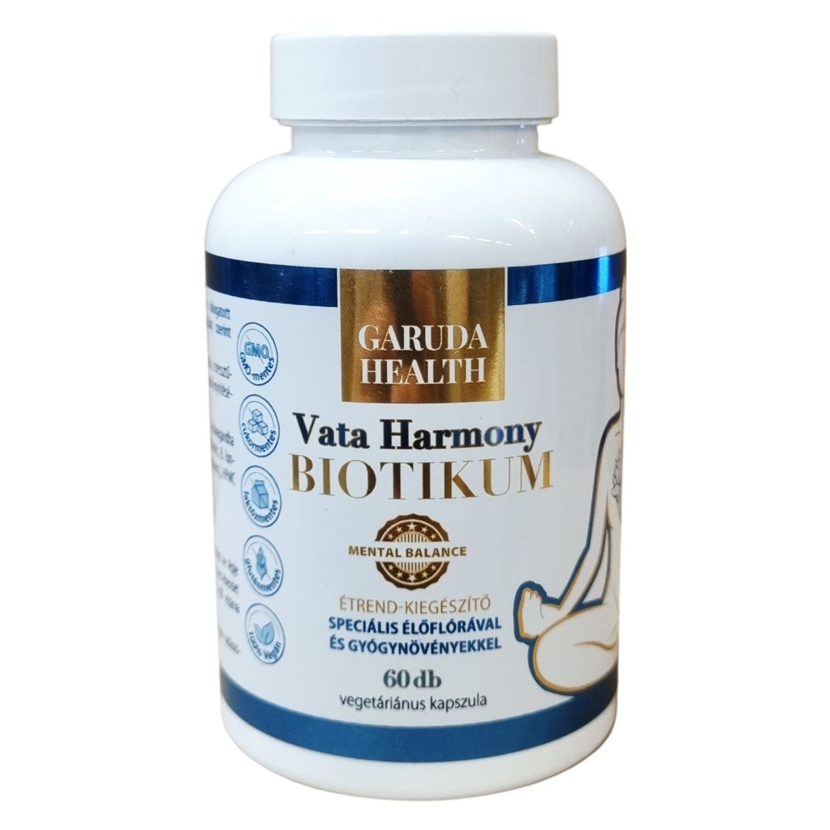 A Vata Harmony BIOTIKUM 20 milliárd jótékony baktériumot és válogatott gyógynövényeket tartalmaz, ayurvedikus Vata alkat szerint összeállítva. Az Ashwagandha és a Brahmi ezen összetevők közül kiemelkednek, amelyek hozzájárulhatnak a stressztűrőképesség fokozásához, a szorongásos panaszok enyhítéséhez és az alvásminőség javításához. A készítmény 60 darab vegetáriánus kapszulát tartalmaz, melyek gyomorsaválló HPMC cellulóz kapszulahéjban találhatók. A termék GMO-mentes, cukormentes, laktózmentes, gluténmentes, és 100% vegán. Az élőflóra keverékében többféle jótékony baktériumtörzs van jelen, mint a Bifidobacterium infantis és a Lactobacillus plantarum, melyek az egészséges bélflóra fenntartását támogathatják.