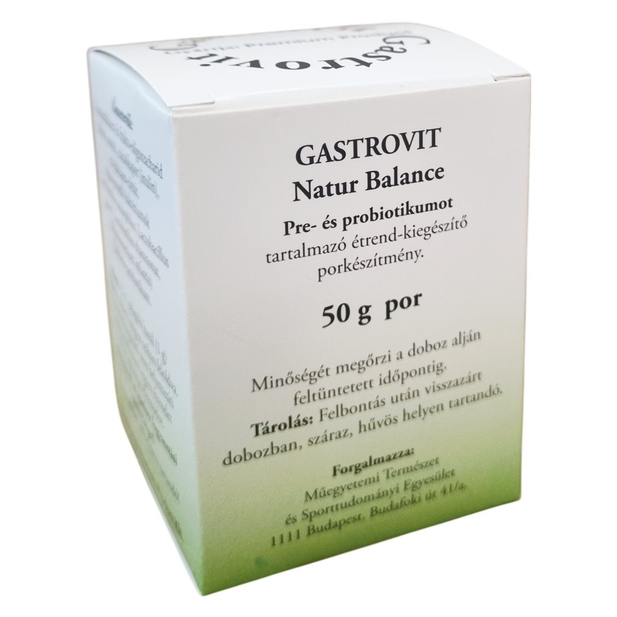 A Gastrovit Natur Balance élelmi rostokat, inulint és élőflórás probiotikumokat tartalmazó étrend-kiegészítő porkészítmény. Hozzájárulhat a bélflóra egyensúlyához. Kiszerelés: 50 g por. Előállítja: Premium Product Kft.