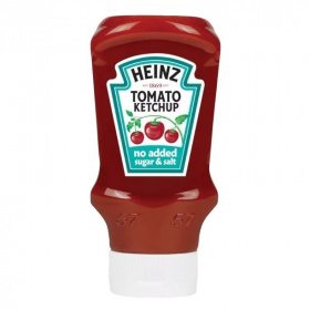 Heinz Zero ketchup magas paradicsomtartalommal (200g paradicsom 100g ketchupban). A ketchup nem tartalmaz hozzáadott cukrot és sót, sem mesterséges tartósítószereket és sűrítőanyagokat. Vegán termék. A csomagolás 100%-ban újrahasznosítható.