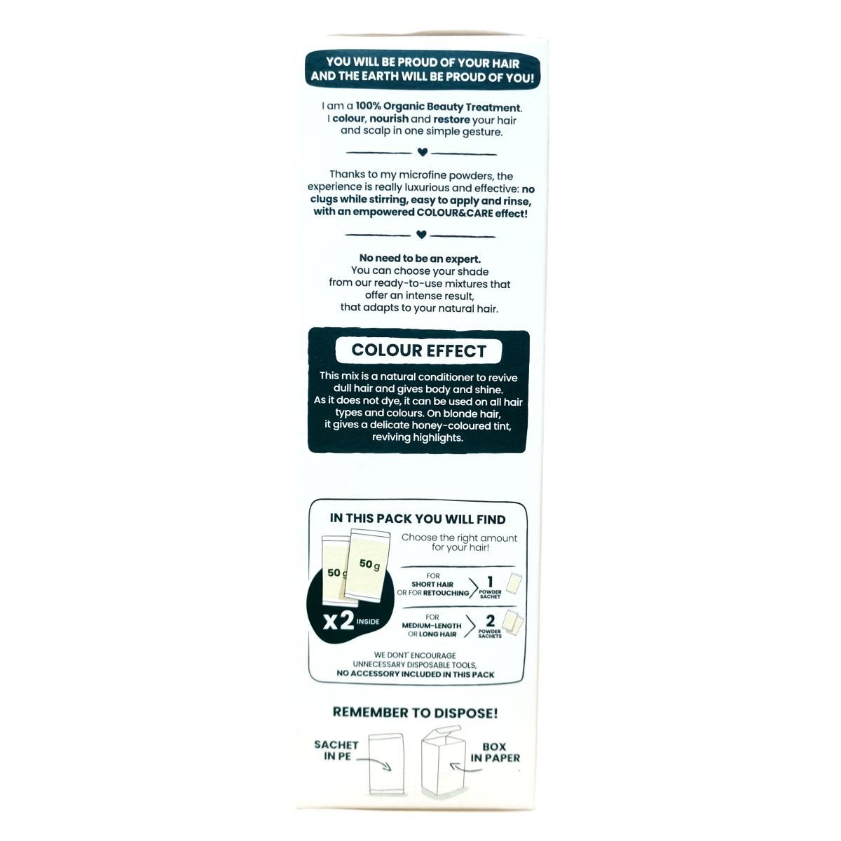 Ez a 100%-ban organikus növényi hajszínező és ápoló termék természetes módon táplálja és fényesíti a hajat, színt nem ad hozzá, így minden hajtípuson használható revitalizáló kondicionálóként.