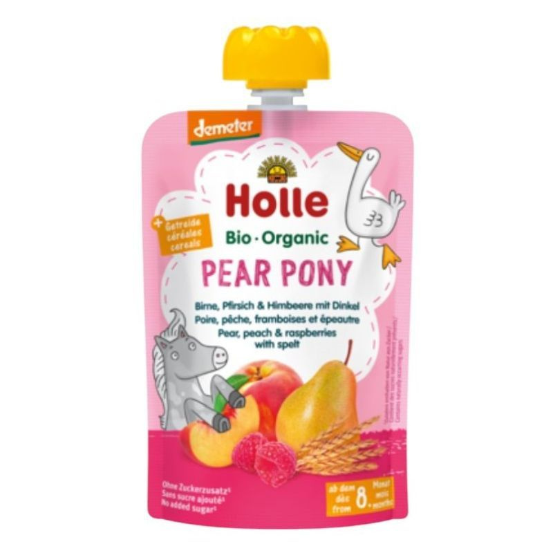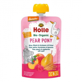 Holle bio gyümölcspüré, pear pony - körte, őszibarack, málna ,tönköly 100g