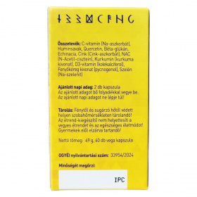 Az Immun Pro Caps egy multifunkcionális étrend-kiegészítő kapszula, amely C-vitamint, huminsavakat, növényi kivonatokat és ásványi anyagokat tartalmaz. Emellett quercetint, béta-glükánt, echinaceát, NAC-t, kurkumint, fenyőkéreg kivonatot és szelént is magában foglal. Ezek az összetevők hozzájárulhatnak az immunrendszer normál működéséhez, továbbá támogathatják a szervezet antioxidáns kapacitásának fenntartását. A C-vitamin például segíthet a fáradtság és kimerültség csökkentésében, valamint hozzájárulhat az energia szintjének és vitalitás fenntartásához. Quercetin további támogatást nyújthat az egészséges szervezet fenntartásában. A termék vegán, GMO-mentes, cukor- és laktózmentes, tartósítószer- és édesítőszermentes, ezáltal széles fogyasztói kör számára alkalmas. Az ajánlott napi adag két kapszula, amelyet bő folyadékkal javasolt bevenni. Tárolása során ügyelni kell a fénytől és hőtől való védelemre, illetve a gyermekektől való elzárásra.