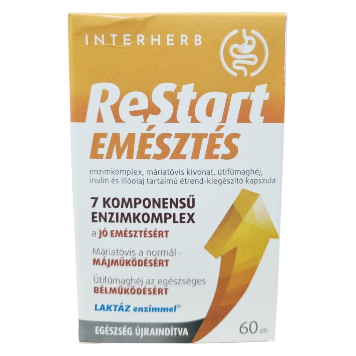 Az INTERHERB ReStart EMÉSZTÉS kapszula enzimkomplexet, máriatövis kivonatot, útifűmaghéjat, inulint és illóolajokat tartalmazhat, amelyek hozzájárulhatnak az emésztés támogatásához és a normál májműködés fenntartásához.