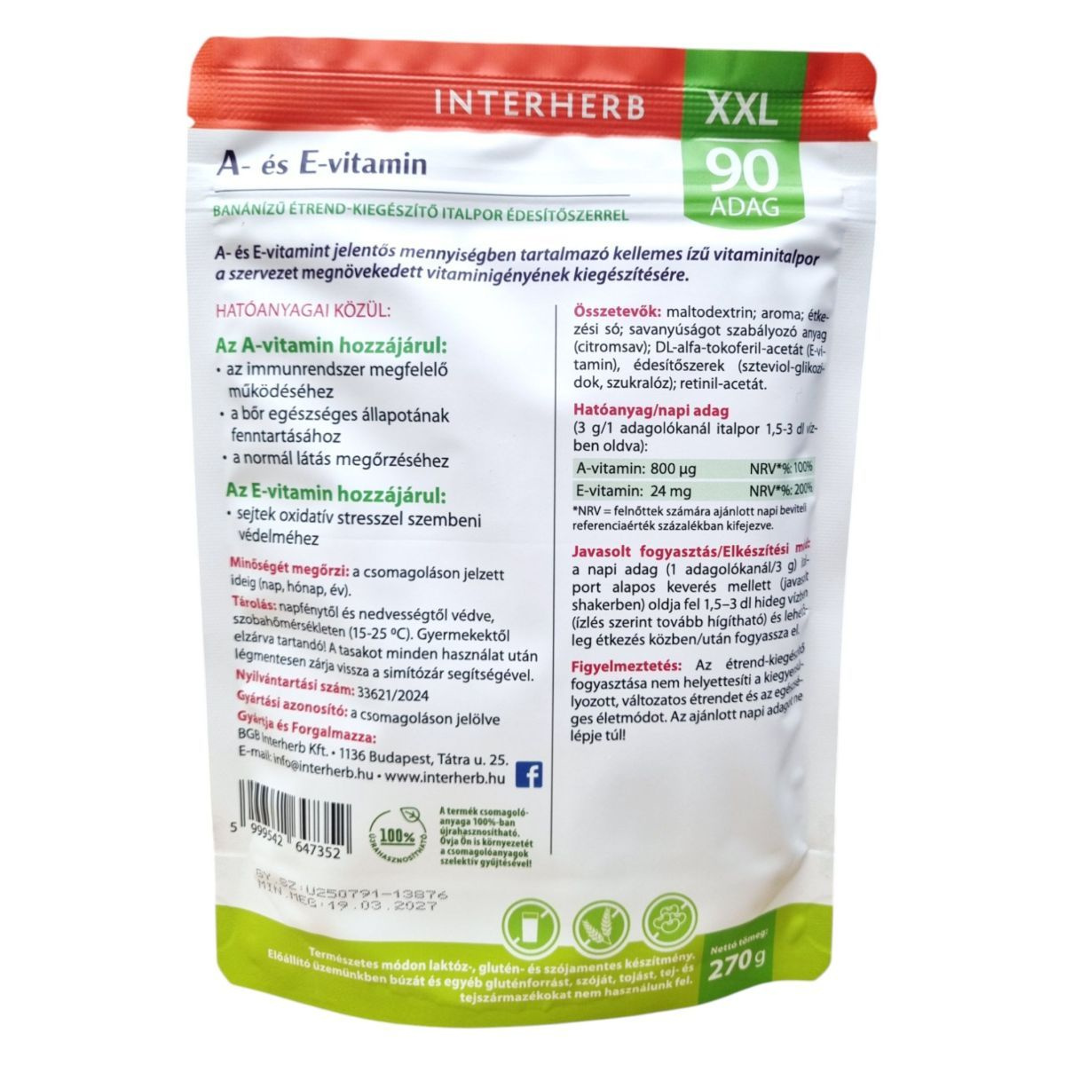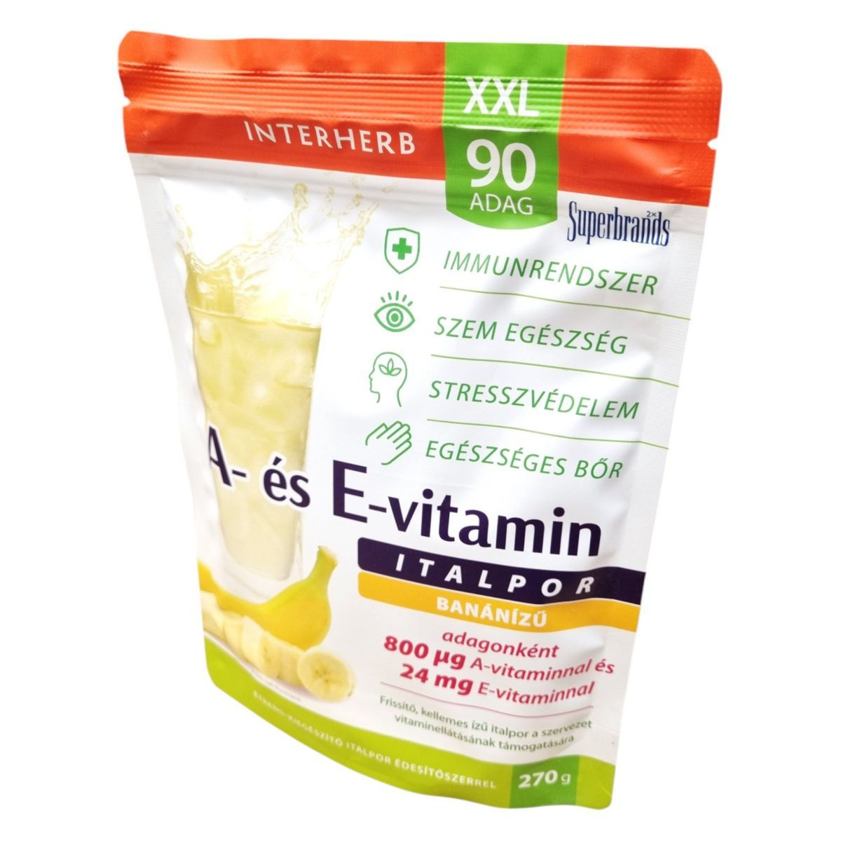 Az INTERHERB XXL banánízű italpor jelentős mennyiségű A- és E-vitamint tartalmazhat, amelyek hozzájárulhatnak az immunrendszer támogatásához, a bőr egészségéhez és a sejtek védelméhez.