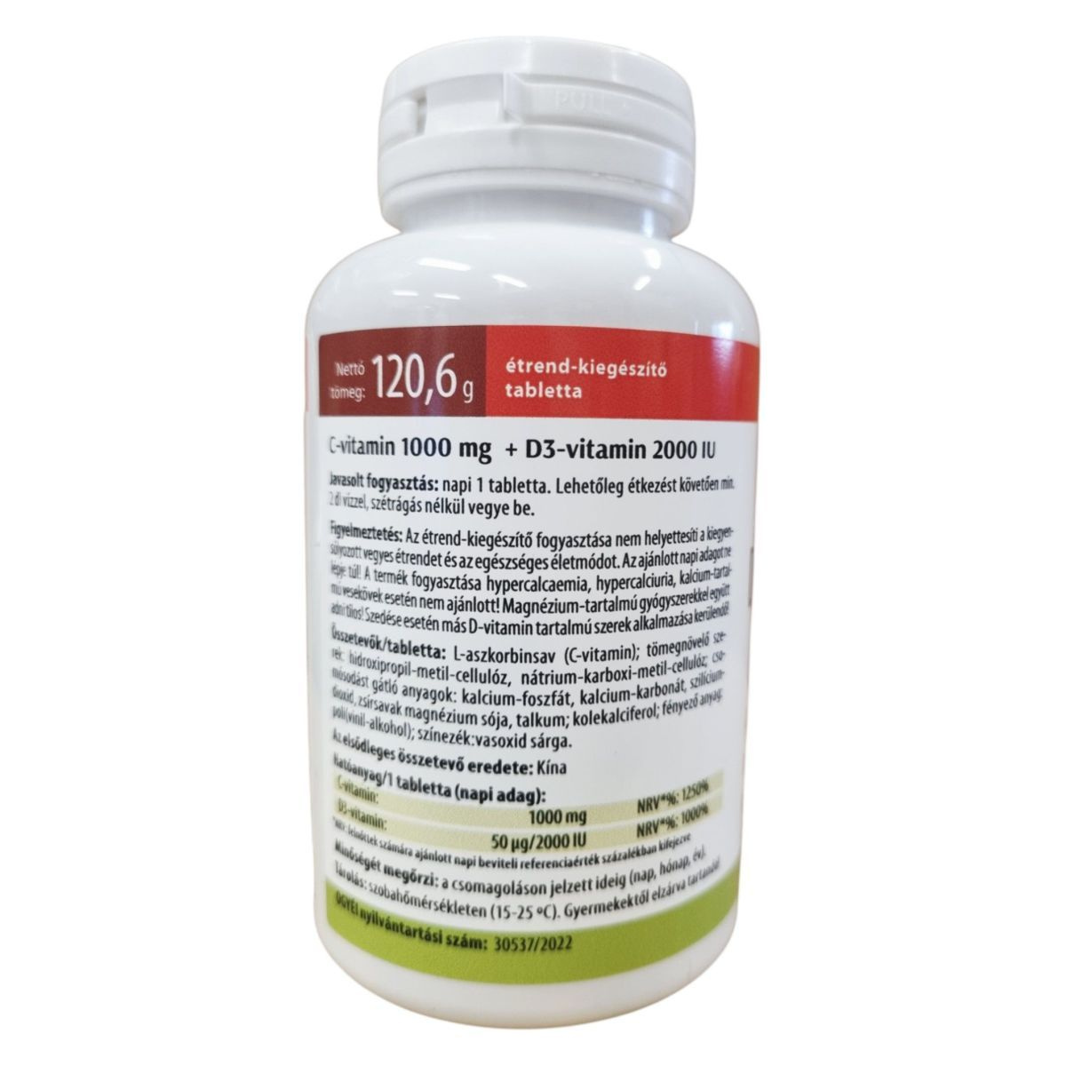 A termék nagydózisú C- és D3-vitamint tartalmaz, amelyek nyújtott kioldódású formulája hozzájárulhat az immunrendszer normál működéséhez és a fáradtság csökkentéséhez.