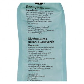 Összetevők: gluténmentes lisztkeverék (rizsliszt, kukoricaliszt, burgonyakeményítő, tapiokakeményítő), élesztő, só.