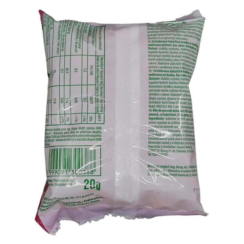 Fedezd fel a cukormentes, málna ízű extrudált kukoricagolyót, amely glutén- és laktózmentes, így ideális választás diétázók számára. Ropogós textúrája és gyümölcsös aromája garantáltan feldobja a napodat!