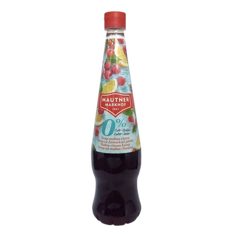 Mautner Markhof málna-citrom szörp, hozzáadott cukor nélkül, édesítőszerekkel.