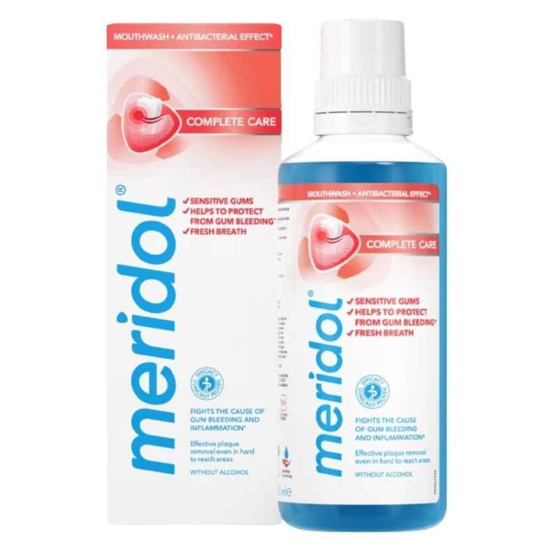 Az optimális védelem érdekében használja a Meridol Complete Care szájvizet a napi szájápolási rutinja részeként a meridol Complete Care Sensitive Gums & Teeth fogkrémmel, a meridol Complete Care fogkefével együtt.