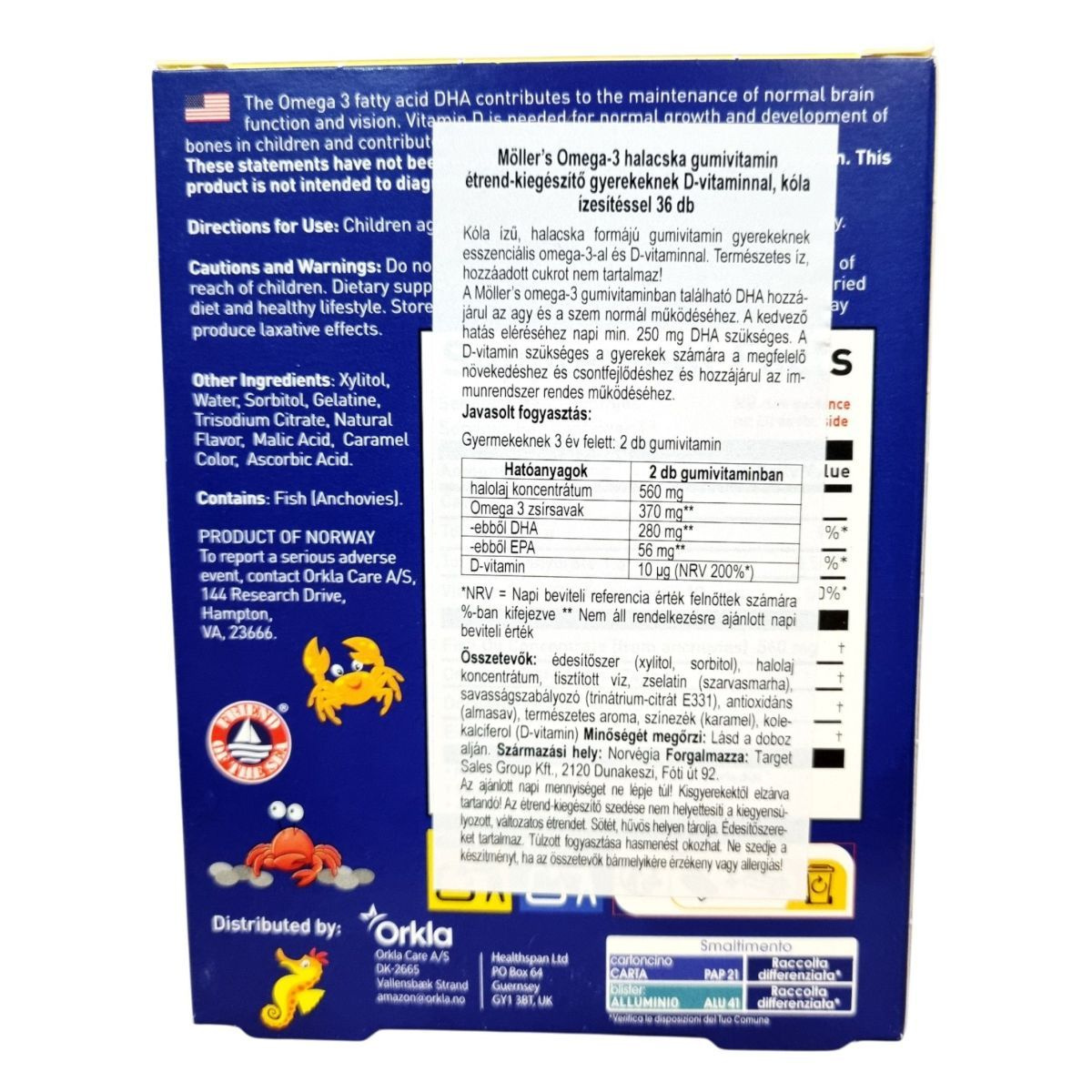 Möllers Omega-3 Jelly Fish gumivitamin gyermekeknek - kóla ízű 36db