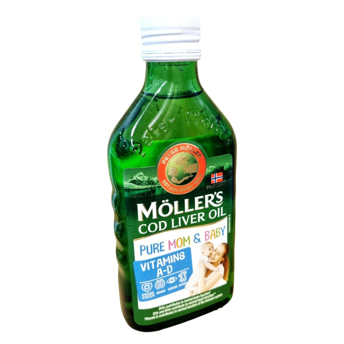 Möller’s Baby Omega-3 halolaj étrend-kiegészítő A- és D-vitaminnal. Esszenciális omega-3-ban gazdag tőkehalmájolajból készült termék. A tőkehalakat a norvég tengeren, Lofoten és Vesterålen környékén fenntartható módon halásszák. A DHA hozzájárul az agy normál működéséhez, az EPA és DHA a szív normál működéséhez, a D-vitamin pedig az immunrendszer normál működéséhez.