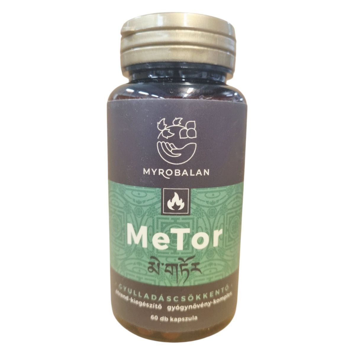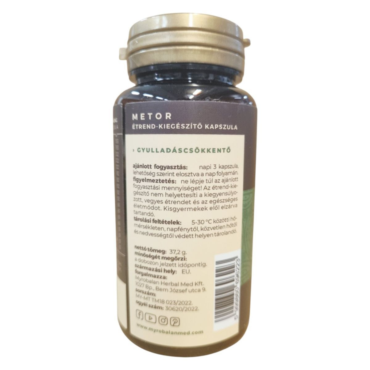 A Myrobalan MeTor egy gyulladáscsökkentő étrend-kiegészítő, amely különböző gyógynövények komplex keverékét tartalmazza. A termék vegán és gluténmentes, nem tartalmaz mesterséges adalékanyagokat, így természetes megoldást kínálhat a gyulladás csökkentésére. A kapszulákban található hatóanyagok, mint például a fehér fűzfa, kurkuma és gránátalma, hozzájárulhatnak a szervezet gyulladásos folyamatainak mérsékléséhez. A termék magyar gyártású, és a Myrobalan Herbal Med Kft. forgalmazza.