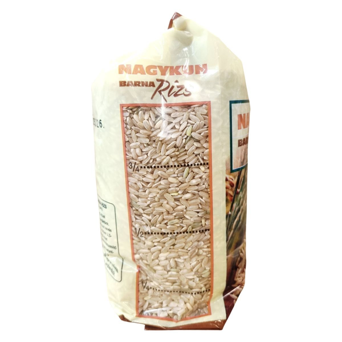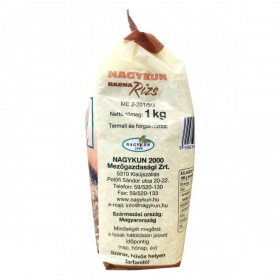 A NAGYKUN BARNA Rizs Magyarországon termelt barna rizs, amely 1 kilogrammos kiszerelésben kerül forgalomba. A termék minőségét a tasak hátoldalán jelzett időpontig őrzi meg. A rizs felhasználása egyszerű, a csomagoláson megtalálható elkészítési javaslat segíti a pergős és ízletes köret elkészítését. A termék természetes alapanyag, sót nem tartalmaz, rost- és fehérjetartalma is jelentős, így kiegyensúlyozott étrendbe könnyen beilleszthető.