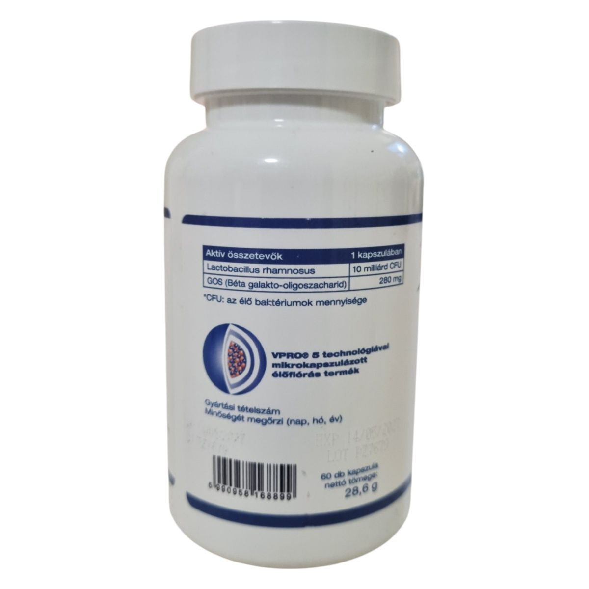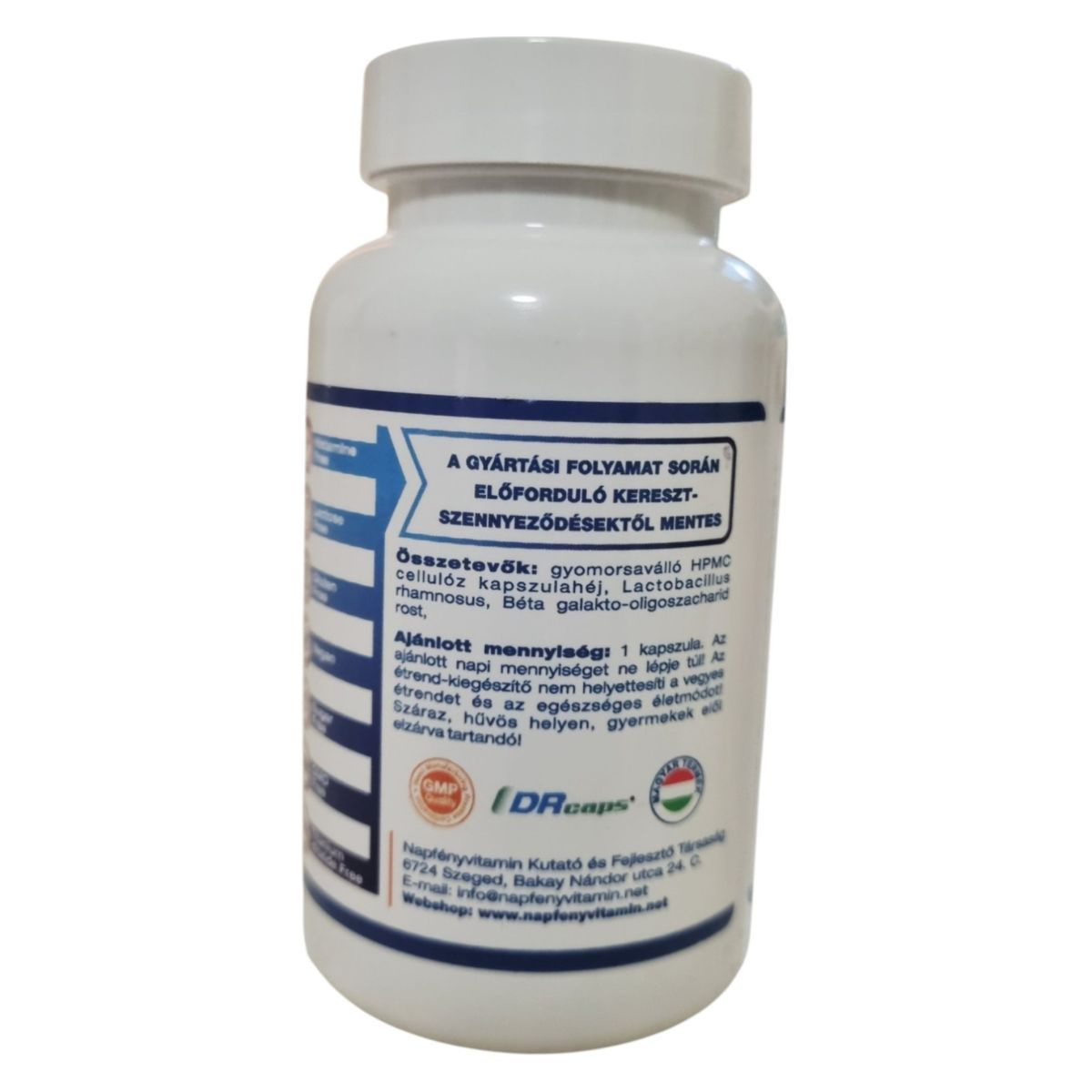 Gyomorsaválló HPMC cellulóz kapszulahéj, Lactobacillus rhamnosus, Béta galakto-oligoszacharid, rost.