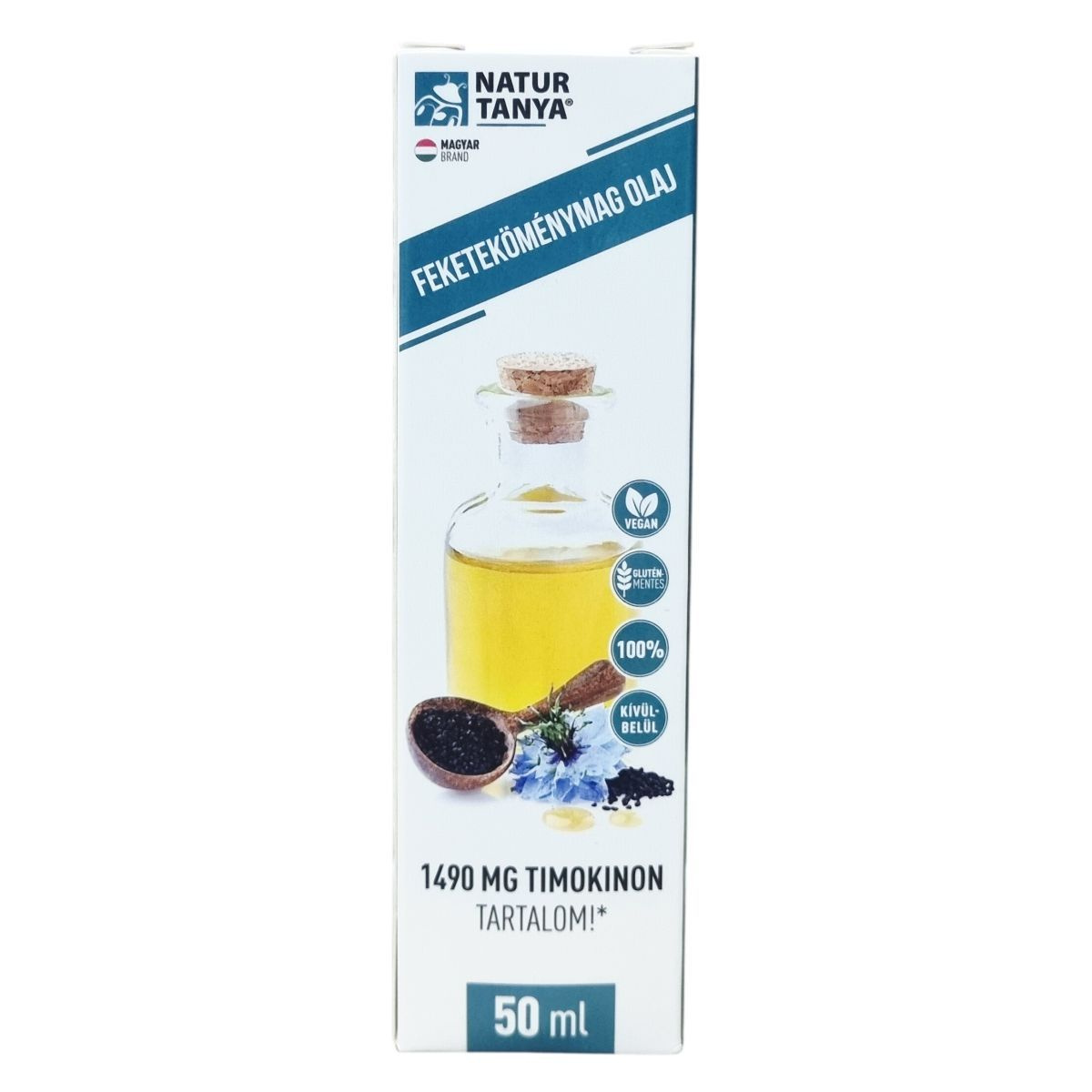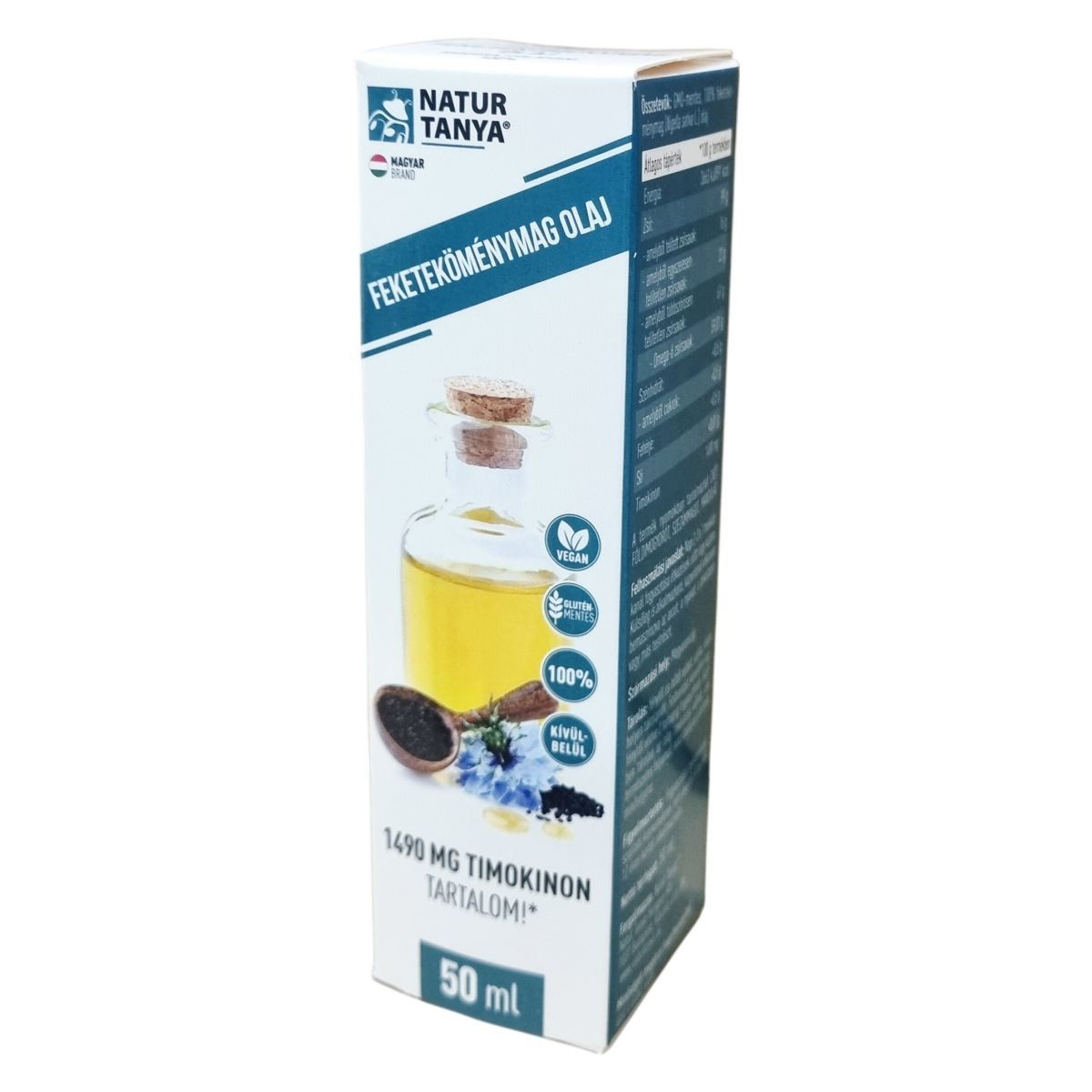 A Natur Tanya® feketeköménymag olaj tradicionálisan, hidegsajtolással előállított, vegán és gluténmentes termék, amely GMO-mentes alapanyagból készül kíméletes gyártástechnológiával, mechanikus préseléssel és adalékanyag nélkül. A termék különlegessége a 1490 mg timokinon tartalom, amelyet független laboratóriumi vizsgálat igazol. A feketeköménymag olaj zöldessárga, sűrű folyadék egyedi, karakteres ízzel, melyet az ókori egyiptomiak is nagyra értékeltek. A telített zsírsavak helyettesítése telítetlen zsírsavakkal az étrendben hozzájárulhat a vér egészséges koleszterinszintjének fenntartásához. A termék természetes eredetű szín-, íz- és állagváltozása a gyártási tételtől függően előfordulhat, de nem befolyásolja a minőséget és hatékonyságot. Magyar tulajdonú cég terméke, mely vásárlásával hazai munkahelyeket támogathat.