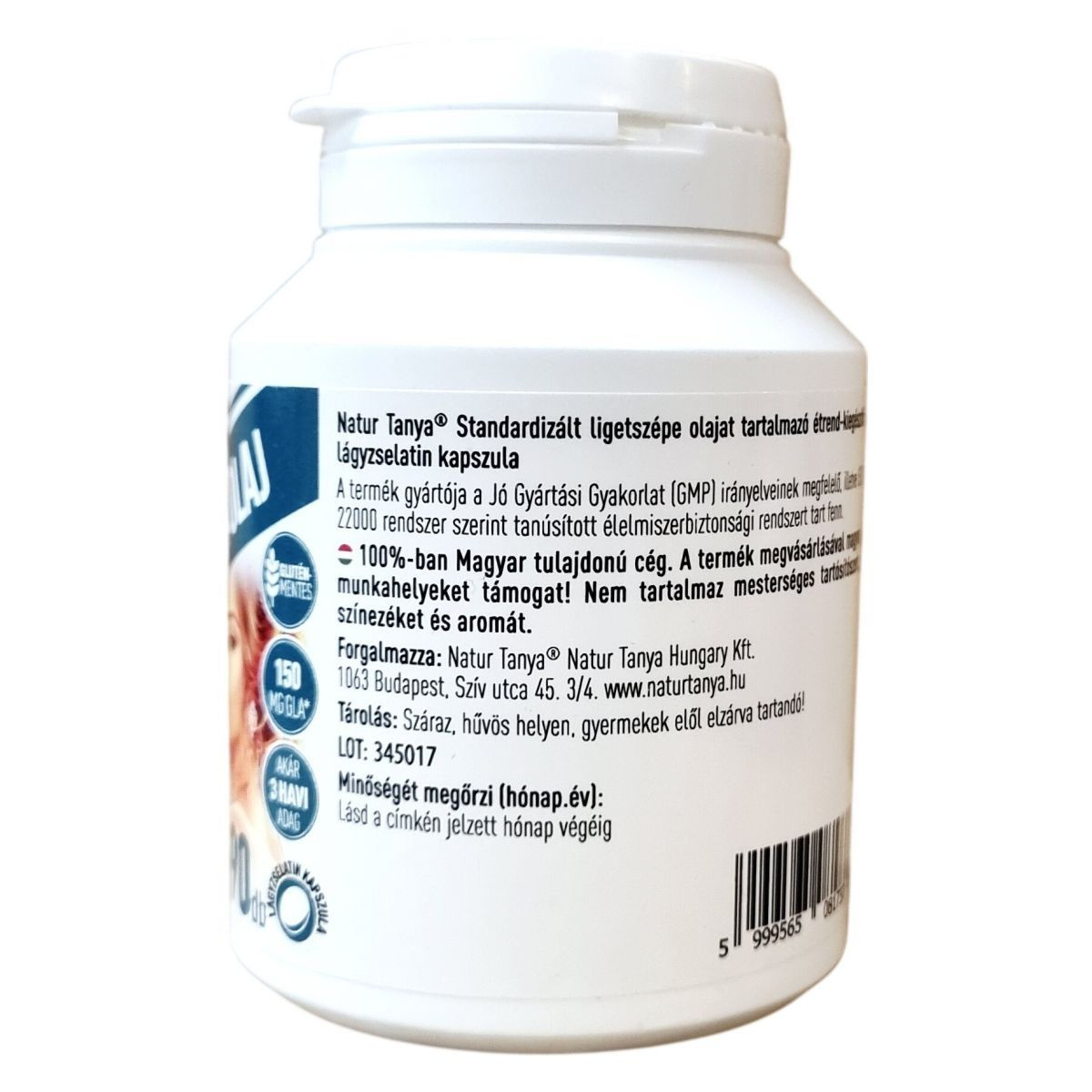 A Natur Tanya® ligetszépe olajat tartalmazó étrend-kiegészítő lágyzselatin kapszula 100%-ban magyar tulajdonú vállalat terméke. Az olaj hidegen sajtolt, és standardizált gamma-linolénsav tartalommal rendelkezik, ami omega-6 zsírsav forrás. A termék mentes mesterséges tartósítószerektől, színezékektől és aromáktól, valamint gluténmentes. A gyártás során a GMP és az ISO 22000 rendszer élelmiszerbiztonsági irányelvei szerint jártak el. A termék nettó tömege 61,65 g, csomagolása 90 darab lágyzselatin kapszulát tartalmaz. A fogyasztók a termék megvásárlásával magyar munkahelyeket támogathatnak. A termék nem helyettesíti a kiegyensúlyozott étrendet és az egészséges életmódot.