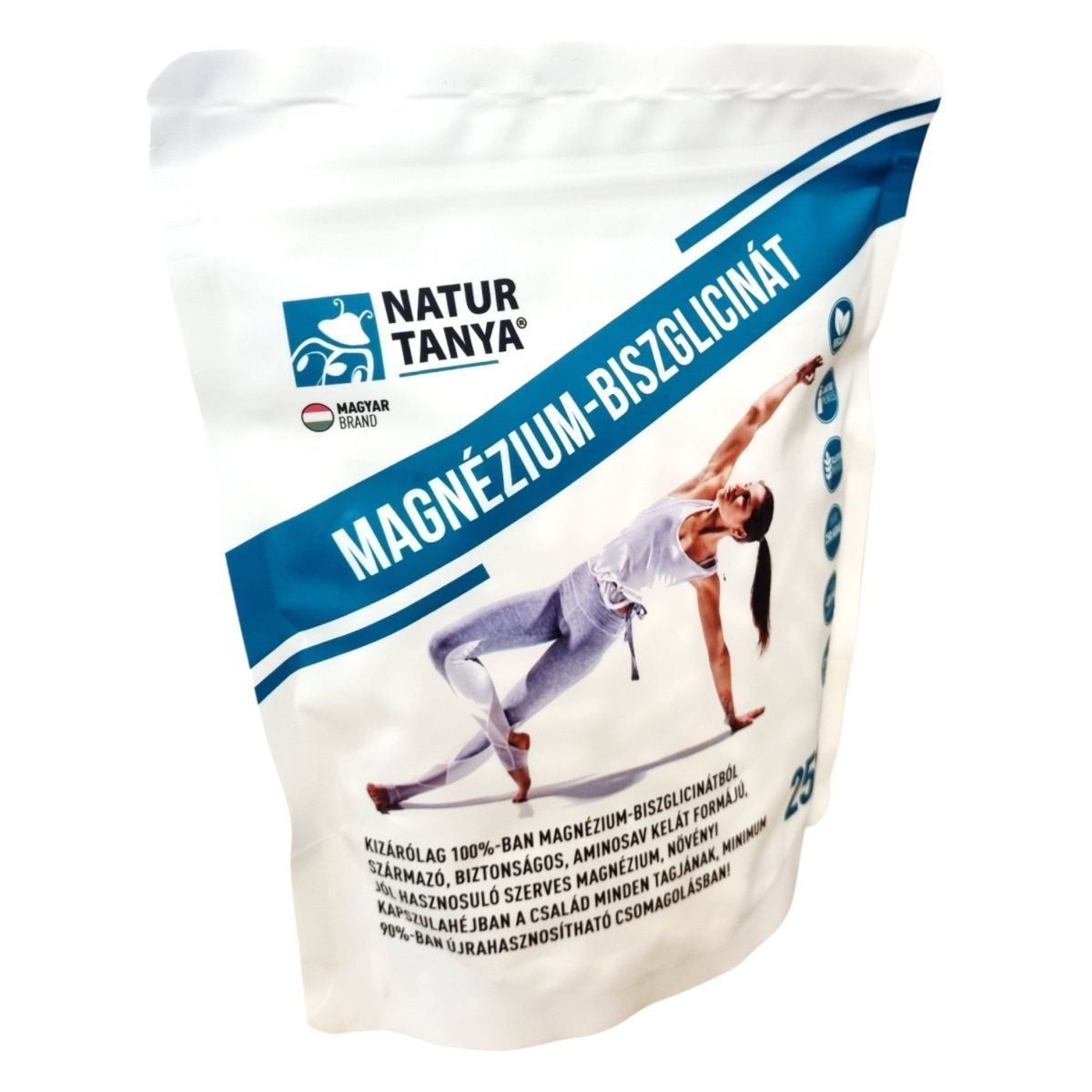 A Natur Tanya Magnézium-biszglicinát szerves, aminosav-kelát formában tartalmazza a magnéziumot, amely kiválóan hasznosuló és jól tolerálható forrás. A termék nagy adagolási számú (250 db kapszula), így hosszú távú kúrát tesz lehetővé. A magnézium hozzájárulhat az idegrendszer és az izomzat normál működéséhez, az elektrolit-egyensúly fenntartásához, valamint a fehérjeszintézis és sejtosztódás normál folyamatához. A vegán kapszulában lévő, magas biológiai hasznosulású magnézium-biszglicinát jól felszívódik, nem terheli a gyomrot, és alkalmas a mindennapi magnézium-pótlásra. A csomagolás minimum 90%-ban újrahasznosítható, a termék nem tartalmaz mesterséges tartósítószert, színezéket vagy aromát, 100%-ban magyar tulajdonú cég fejlesztése.