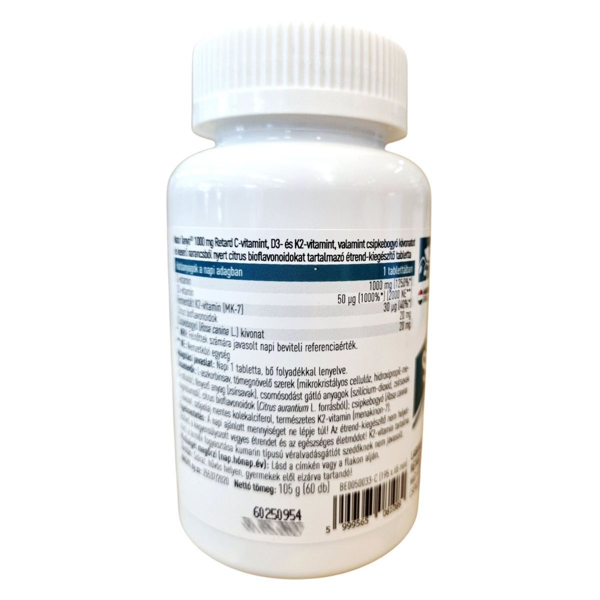 LABORBAN BEVIZSGÁLT TERMÉK! IGAZOLT RETARD HATÓANYAG LEADÁS. Nyújtott, fokozatosan szabadul fel a szervezetben. Antioxidáns hatású csipkebogyó kivonattal és citrus bioflavonoidokkal. Nem tartalmaz mesterséges tartósítószert, színezéket és aromát. A C-vitamin hozzájárul a normál kollagén képződéshez, az immunrendszer és az idegrendszer normál működéséhez, a fáradtság és kifáradás csökkentéséhez. A D-vitamin hozzájárul a kalcium és a foszfor normál felszívódásához, a vér normál kalciumszintjéhez, az egészséges csontozat és fogazat fenntartásához. A K-vitamin részt vesz a normál véralvadásban és hozzájárul az egészséges csontozat fenntartásához.