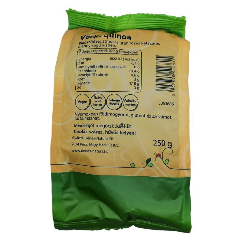 Felhasználási javaslat: fogyasztható főzve reggeliként, ebédhez köretként vagy quinoa salátát készítve friss zöldség vagy gyümölcsfélékkel.