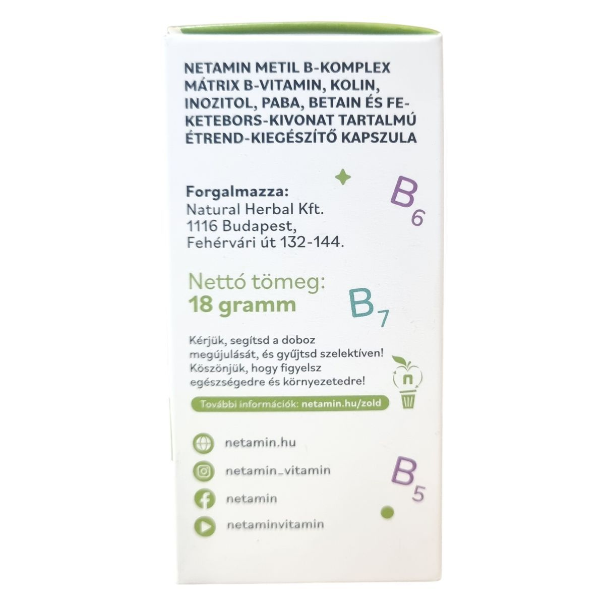 A Metil B-komplex Mátrix kapszula magas hatóanyagtartalmú B-vitaminokat, kolint, inozitolt, PABA-t, betaint és feketebors-kivonatot tartalmaz, amelyek hozzájárulhatnak a szervezet normál működéséhez és támogatásához.