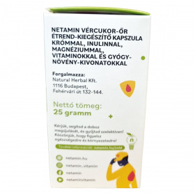 A Netamin Vércukor-Őr étrend-kiegészítő kapszula egy komplex formula, amely 13 aktív összetevőt tartalmaz, beleértve a szerves krómot, inulint, magnéziumot, vitaminokat és különböző gyógynövény-kivonatokat. A termék célja, hogy támogassa a normál vércukorszint fenntartását és a makrotápanyagok normál anyagcseréjét. A kapszulák napi adagja 1 kapszula, amelyet bő folyadékkal, lehetőleg étkezés előtt kell bevenni. A termék nem helyettesíti a vegyes étrendet és az egészséges életmódot, és nem ajánlott terhesség vagy szoptatás alatt. A kapszulák tárolása száraz, sötét, hűvös helyen javasolt. A terméket a Natural Herbal Kft. forgalmazza.