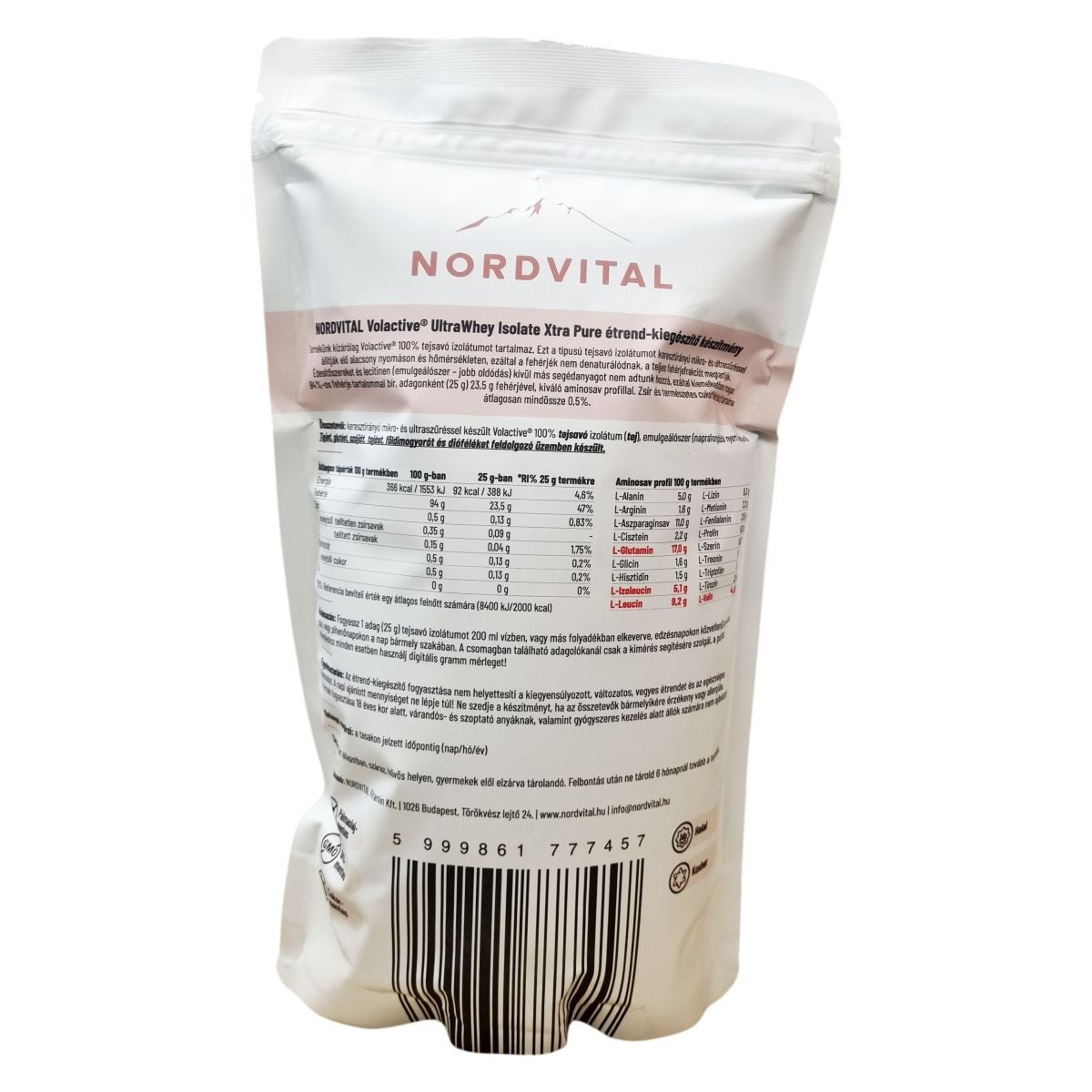 A NORDVITAL Volactive® UltraWhey Isolate Xtra Pure kizárólag Volactive® 100% tejsavó izolátumot tartalmaz, amely speciális keresztirányú mikro- és ultraszűréssel készül alacsony nyomáson és hőmérsékleten. Ennek köszönhetően a fehérjék nem denaturalizálódnak, emiatt a teljes fehérjefrakció megmarad, és a termék kiemelkedően magas, 94%-os fehérjetartalommal bír. Egy adag 25 g termék 23,5 g fehérjét tartalmaz, amely kiváló aminosav profillal rendelkezik. A termék zsírtartalma és a természetes cukor (laktóz) mennyisége átlagosan csak 0,5%. Csak édesítőszer és napraforgóból származó lecitin (emulgeálószer) került hozzáadásra, más segédanyag nélkül. A termék megfelel a halal és kosher előírásoknak is. Az adagolókanál a csomagban a kimérés segítésére szolgál, de a pontos mennyiséghez javasolt digitális mérleg használata. A termék nem tartalmaz pálmaolajat, GMO-mentes és cukormentes, így különböző étrendi igényeknek is megfelel.