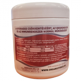 Magas flavonoid és antioxidáns tartalmú szuperkoncentrátum. Összetevői támogatják a fizikai és szellemi aktivitást. Cékla, fekete ribizli, kék áfonya, sárgarépa tartalmú. Napi javasolt adagban 500mg C vitaminnal + az összetevők természetes vitamintartalmával. Kollagén tartalommal a napi javasolt adagban 1660mg. Inulin összetevővel, amely prebiotikumként a bélflóra egyensúlyát támogatja. Instant por állagú szuperkoncentrátum, kanálról vagy kevés folyadékban elkeverve is jól fogyasztható. Pótold a napi C-vitamin adagod úgy, hogy közben természetes vitamintartalmú szuperkoncentrátummal erősíted az immunrendszered.