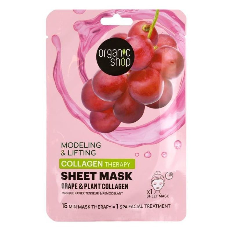Organic Shop bio fátyolmaszk feszesítő szőlővel és növényi kollagénnel 25g