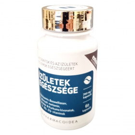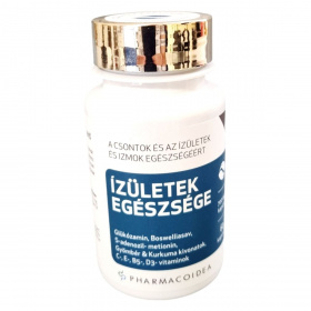 Az Ízületek Egészsége étrend-kiegészítő célja, hogy támogassa a csontok, ízületek és izmok normál funkcióját. A termék glükózamint, boswelliasavat, S-adenozil-metionint, gyömbér és kurkuma kivonatokat, valamint C-, E-, B5- és D3-vitaminokat tartalmaz. Ezek az összetevők hozzájárulhatnak a gyulladásos válasz szabályozásához, a megfelelő kollagén képződéshez, és ezen keresztül a csontok és a porcok normál állapotának fenntartásához. A terméket a Pharmacoidea Kft. gyártja Szegeden.