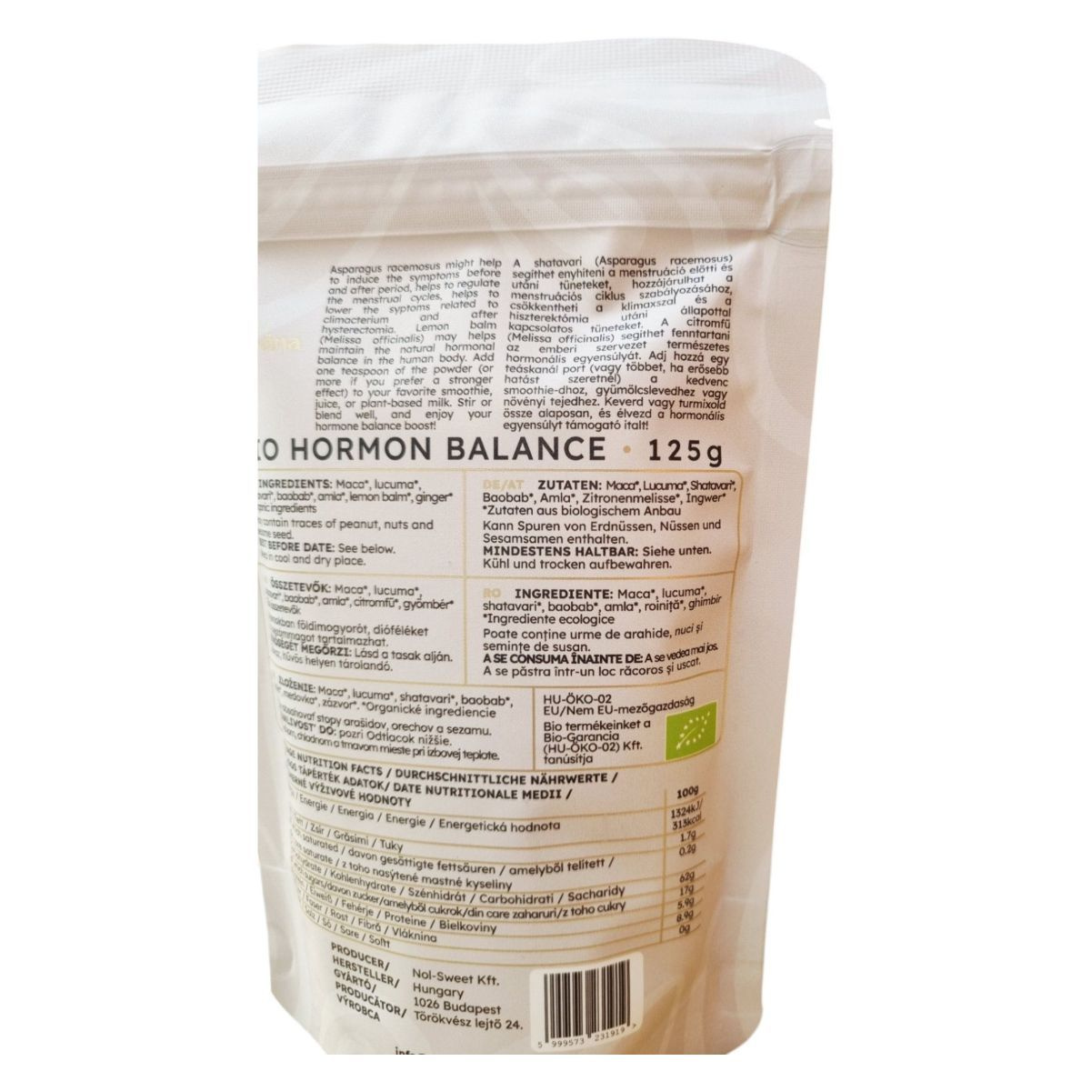 A Prāna BIO HORMON BALANCE egy 125g-os kiszerelésű étrend-kiegészítő, amely organikus szuperélelmiszerekből készült. A termék célja, hogy természetes módon támogassa a hormonális egyensúlyt és a mindennapi harmóniát. A termék bio, vegán és gluténmentes, így széles körben alkalmazható különböző étrendi igények esetén. Az összetevők között megtalálható a maca, lucuma, shatavari, baobab, amla, citromfű és gyömbér, amelyek mind organikus forrásból származnak. A termék nyomokban földimogyorót, dióféléket és szezámmagot tartalmazhat, ezért allergiások számára fontos az óvatosság. A termék energia- és tápérték adatai alapján alacsony zsírtartalmú, de jelentős mennyiségű szénhidrátot és cukrot tartalmaz. A termék minőségét száraz, hűvös helyen történő tárolással lehet megőrizni.