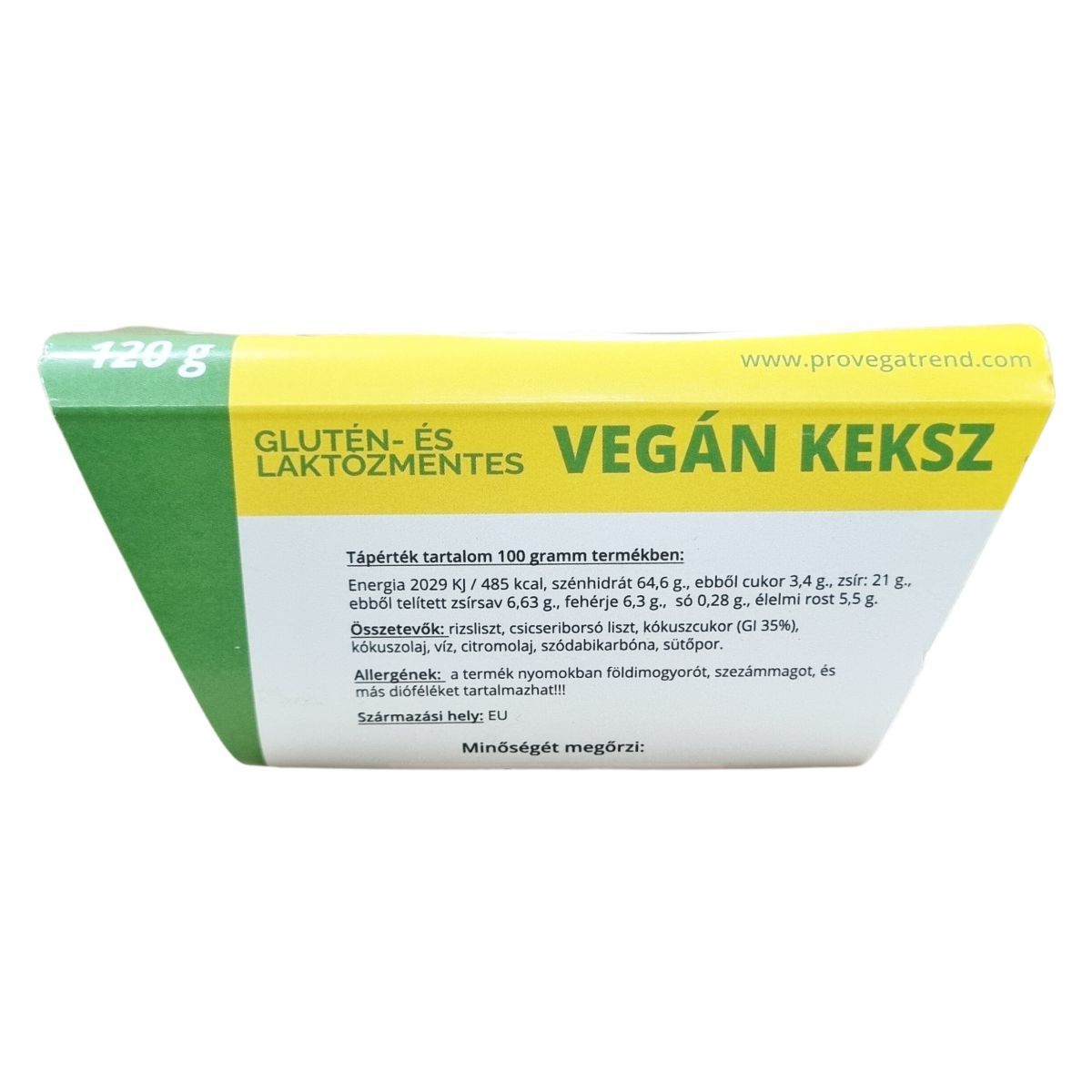 Citrommal ízesített, kizárólag növényi eredetű alapanyagokból készült, élelmi rostokkal dúsított, élesztő, tartósítószer, és adalékanyag mentes, kókusz cukorral édesített, laktóz- és gluténmentes vegán keksz.