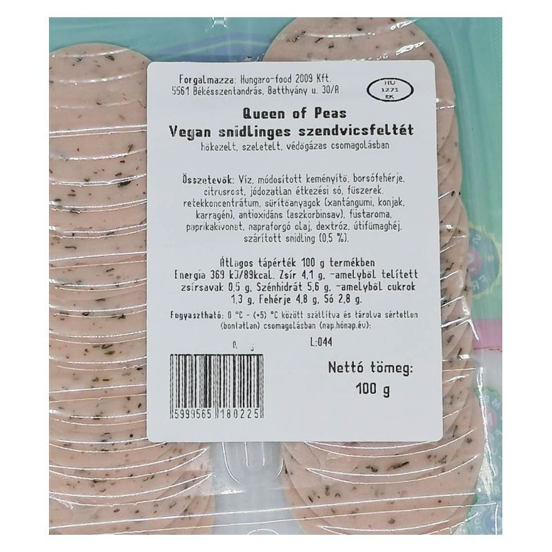 A Queen of Peas vegán snidlinges szendvicsfeltét egy ízletes és tápláló alternatíva a hagyományos szendvicskrémekhez képest. Ez a termék kifejezetten azok számára készült, akik egészséges, húsmentes és gluténmentes megoldásokat keresnek az étkezéseikhez. A snidling friss, aromás íze tökéletesen kiegészíti a szendvicseket, salátákat vagy akár a zöldségeket is, így változatos és ízletes ételeket készíthetünk vele. A 100 grammos kiszerelés praktikus, könnyen tárolható, és ideális választás lehet a mindennapi étkezésekhez, legyen szó reggeliről, uzsonnáról vagy akár vacsoráról. A termék nem tartalmaz állati eredetű összetevőket, így vegán életmódot követők számára is tökéletes választás. A gluténmentessége miatt a lisztérzékenyek is bátran fogyaszthatják, anélkül, hogy aggódniuk kellene az allergiás reakciók miatt.