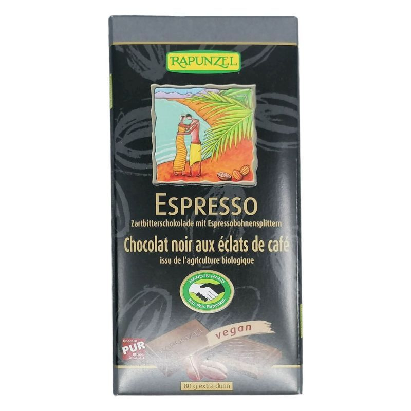 A Rapunzel bio félédes kávés csokoládé egy különleges ízélményt kínál a csokoládé és a kávé szerelmeseinek. Ez az eredeti svájci csokoládé a legfinomabb kesernyés kakaóból készült, amelynek kakaótartalma minimum 51%. A csokoládé gazdag ízvilágát a pörkölt espresso kávédarabkák teszik még különlegesebbé, amelyek minden falatban felfedezhetők. A csokoládé textúrája sima és krémes, míg a kávé darabkák roppanós élményt nyújtanak, így minden falat egy újabb felfedezés. A termék bio minősítése garantálja, hogy a legjobb minőségű, természetes alapanyagokból készült, mentes a mesterséges adalékanyagoktól és tartósítószerektől. Ideális választás lehet azok számára, akik szeretnék élvezni a csokoládé és a kávé harmonikus kombinációját, miközben tudatosan táplálkoznak.