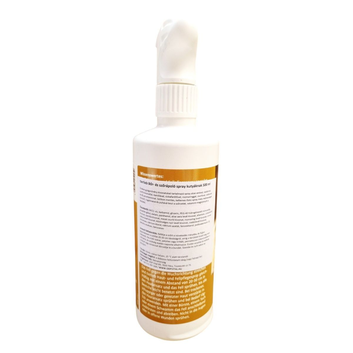 Értékes gyógynövény kivonatokat tartalmazó spray, amely aloe verával, csalánnal, nyírfa kivonattal és más természetes összetevőkkel segíthet a kutyák bőrének és szőrzetének ápolásában.