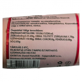 Összetevők: szója 26%, ivóvíz, repceolaj, kukoricakeményítő, étkezési só, természetes fűszerek