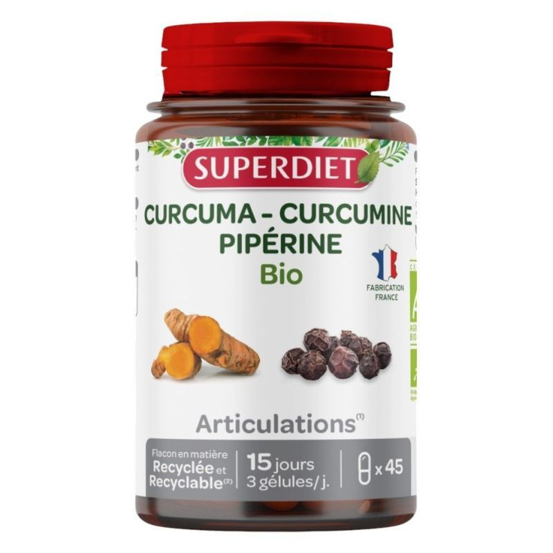 Tartsa meg ízületei rugalmasságát és hajlékonyságát minden nap a Superdiet Kurkuma & feketebors bio kapszula segítségével! A Superdiet egy olyan formulát alkotott meg, amely kurkumát, kurkumint és piperint tartalmaz:A kurkuma ismert arról, hogy hozzájárul az ízületek megfelelő működéséhez. A kurkumin és a piperin kiegészítik ezt a formulát.