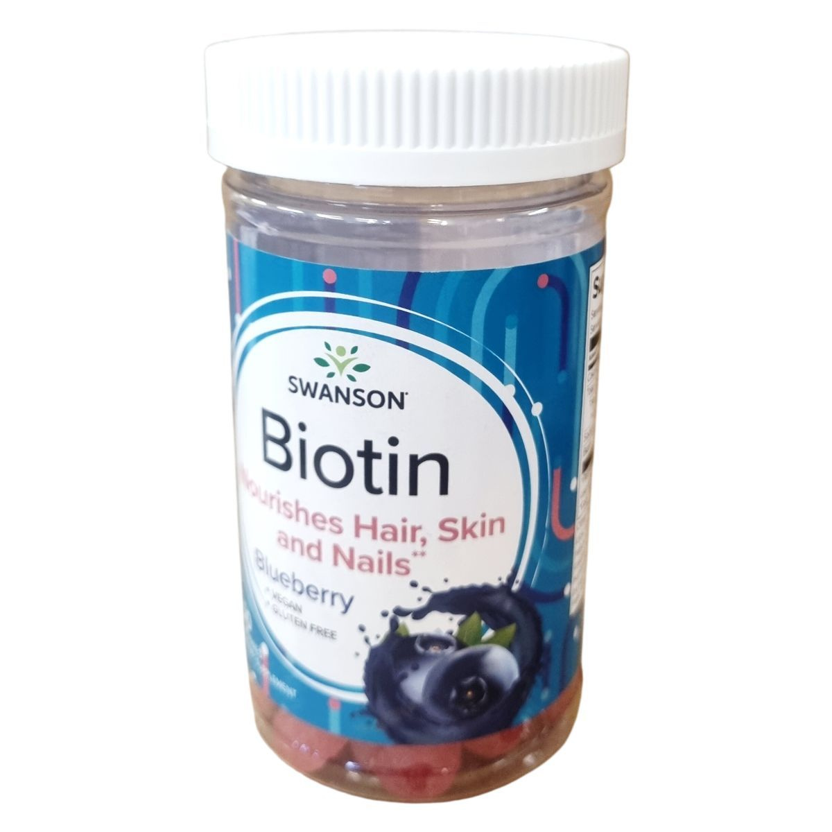 A SWANSON® Biotin gumivitamin Blueberry ízesítéssel készül az Egyesült Államokban. Egy adag 2 gumivitamint tartalmaz, melyek egyenként 2500 mcg biotint biztosítanak, ami az ajánlott napi bevitel 5000%-a. A termék nátriumot is tartalmaz, emellett glükóz szirupból, cukorból, pektinből, citromsavból, valamint természetes áfonya és citrom ízesítőkből és lila répalé koncentrátumból áll. A bevonat növényi olajat és karnauba viaszt tartalmaz. A termék vegán és gluténmentes, így különféle étrendi irányzatok mellett is fogyasztható. Fontos, hogy a napi ajánlott mennyiséget ne lépjük túl, és a termék nem helyettesíti a kiegyensúlyozott étrendet és az egészséges életmódot. Terhesség és szoptatás alatt a fogyasztása nem ajánlott. A dobozt gyermekektől elzárva kell tartani. A minőség megőrzése érdekében száraz, hűvös helyen tárolandó, a gyártástól számított 2 évig felhasználható.