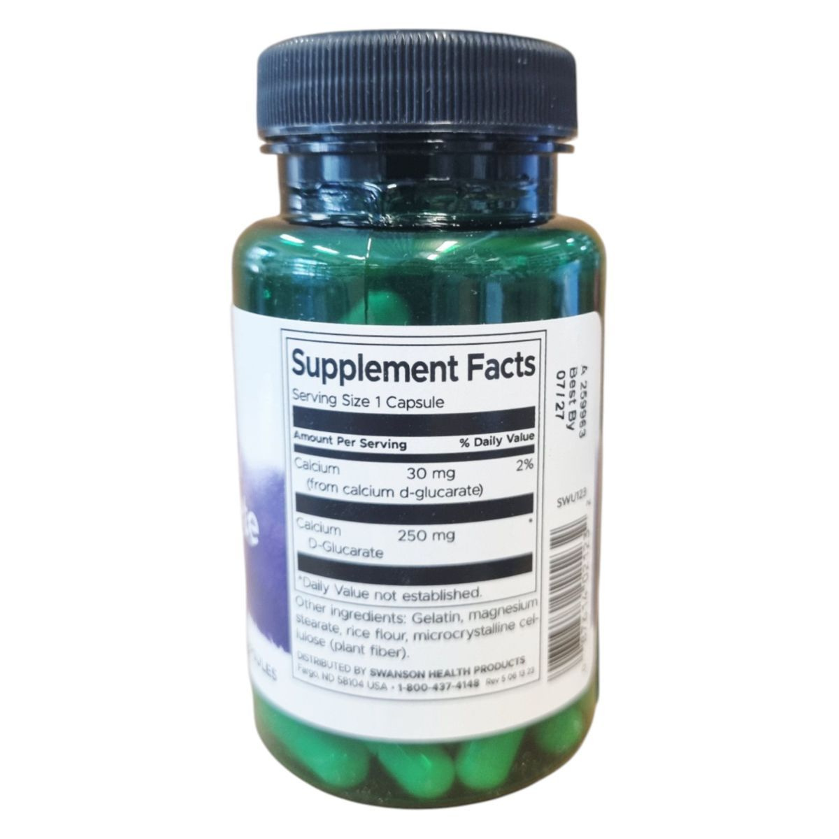A Swanson Calcium D-Glucarate egy étrend-kiegészítő, amely kalciumot és kálcium-D-glukarátot tartalmaz. A termék 60 kapszulás kiszerelésben kapható, és a szervezet méregtelenítő folyamatait támogathatja. A termék összetevői között megtalálható a mikrokristályos cellulóz, zselatin, rizsliszt és magnézium sztearát. A terméket száraz, hűvös helyen kell tárolni, és fontos, hogy gyermekek elől elzárva tartsuk. Az OGYÉI nyilvántartási száma 26577/2021.