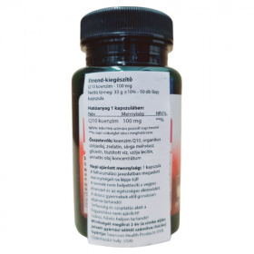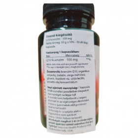 A Q10 koenzim kapszula 100 mg hatóanyagot tartalmaz, amely támogathatja a sejtek energiatermelését. Organikus összetevői révén természetes forrásból származik.