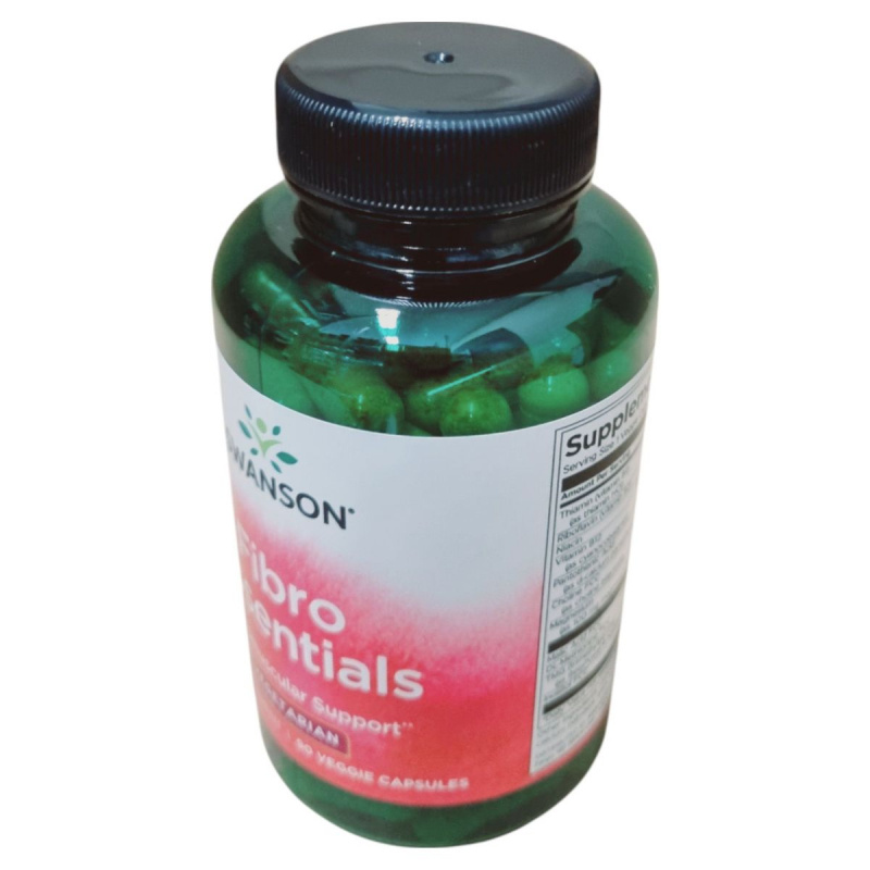 A Swanson Fibro Essentials egy komplex étrend-kiegészítő, amely különféle vitaminokat, aminosavakat, kolint és inozitolt tartalmaz. A termék célja, hogy támogassa a szervezet különböző funkcióit, és vegetáriánus kapszulák formájában érhető el. A napi ajánlott mennyiség egy kapszula, amely biztosíthatja a szükséges hatóanyagokat. Fontos, hogy a termék nem helyettesíti a vegyes étrendet és az egészséges életmódot, és terhesség, valamint szoptatás alatt nem ajánlott a fogyasztása. A terméket száraz, hűvös helyen kell tárolni, és gyermekek elől elzárva tartandó.