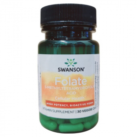 A Swanson 5-metil-tetrahidrofolát kapszula 800 mcg folátot tartalmaz, amely hozzájárulhat a normál vérképzéshez és az immunrendszer megfelelő működéséhez. A termék növényi kapszulahéjjal készült, így vegetáriánusok számára is alkalmas lehet. A folát Quatrefolic formában van jelen, amely a szervezet számára könnyebben hasznosítható. A termék barna rizslisztet és magnézium-sztearátot is tartalmaz. Fontos, hogy a napi ajánlott mennyiséget ne lépje túl, és a terméket gyermekek elől elzárva tartsa. A kapszulákat száraz, hűvös helyen kell tárolni. A terméket az USA-ban gyártják, és a Ceres s of Norway Kft. forgalmazza Magyarországon.