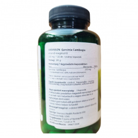 A SWANSON Garcinia Cambogia egy növényi alapú étrend-kiegészítő, amelyet a testsúlykezelés támogatására fejlesztettek ki. A termék 120 növényi kapszulát tartalmaz, mindegyik 250 mg Garcinia Cambogia kivonattal, amely standardizált minimum 60% hidroxi-citromsavval. Az összetevők között található rizsliszt, hipromellóz, magnézium-sztearát és szilícium-dioxid. A termék vegetáriánus étrendbe illeszthető. Fontos, hogy a javasolt napi mennyiséget ne lépje túl, és a terméket gyermekek elől elzárva, száraz, hűvös helyen tárolja. Az OGYÉI notifikációs száma 34467/2024.